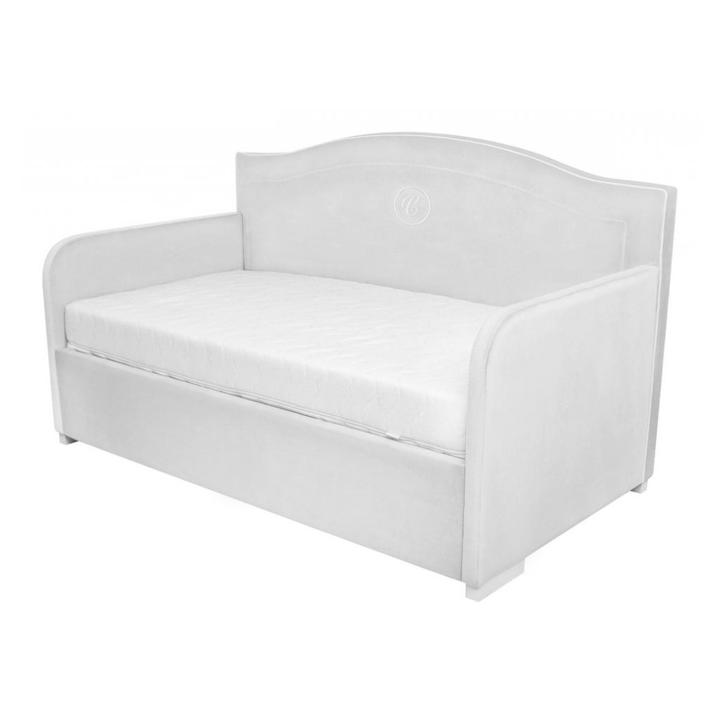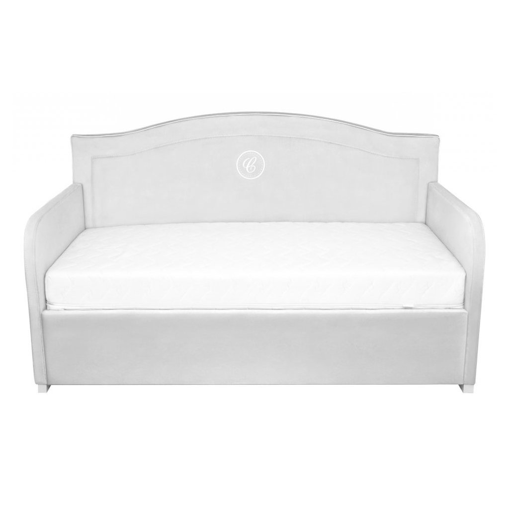 Elegantná čalúnená detská posteľ, zdobená exkluzívnou výšivkou s písmenom "C". Vyrobené z kvalitnej umývateľnej látky v šedej farbe, vďaka ktorej je nábytok odolný voči akémukoľvek znečisteniu. Čelo postele je ukončené ozdobnou vlnkou a bielou vsadkou. Je veľmi pohodlná a jej tvar vám umožňuje použiť ju aj ako pohovku. Posteľ je možné objednať s úložným priestorom.