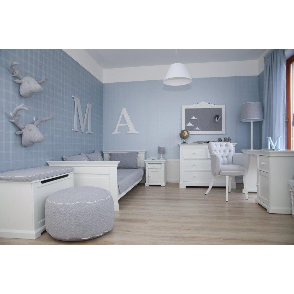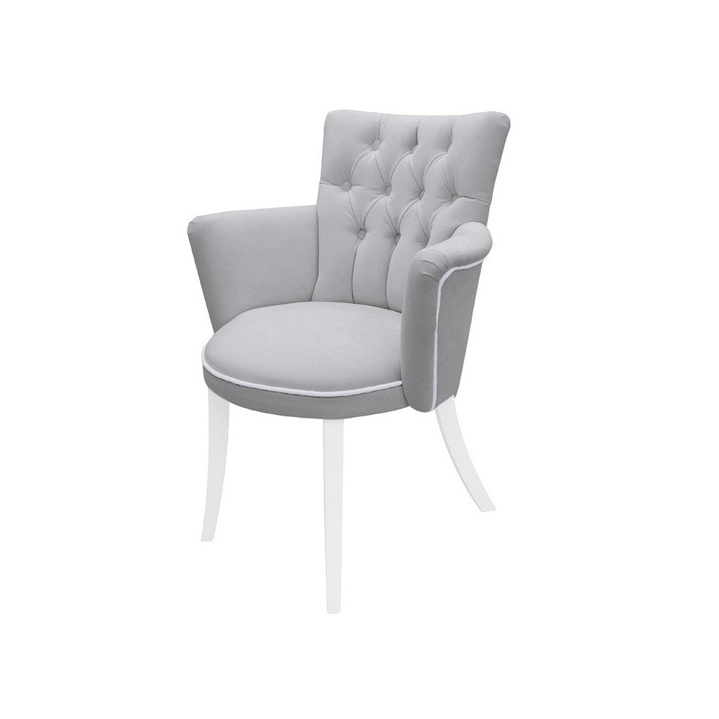 Krásna, hlboko prešívaná stolička v šedej farbe. Ideálna na pracovný stôl alebo toaletný stolík, vkusne zakončená šnúrkou. Štyri biele nohy sú stabilnou oporou pre vysoké a mäkké sedadlo. Dobre tvarované, prešívané operadlo pomáha udržiavať správny tvar pri sedení a pohodlné podrúčky ešte viac zvyšujú pohodlie kresla. Gombíky sú potiahnuté farbou poťahovej látky stoličiek.