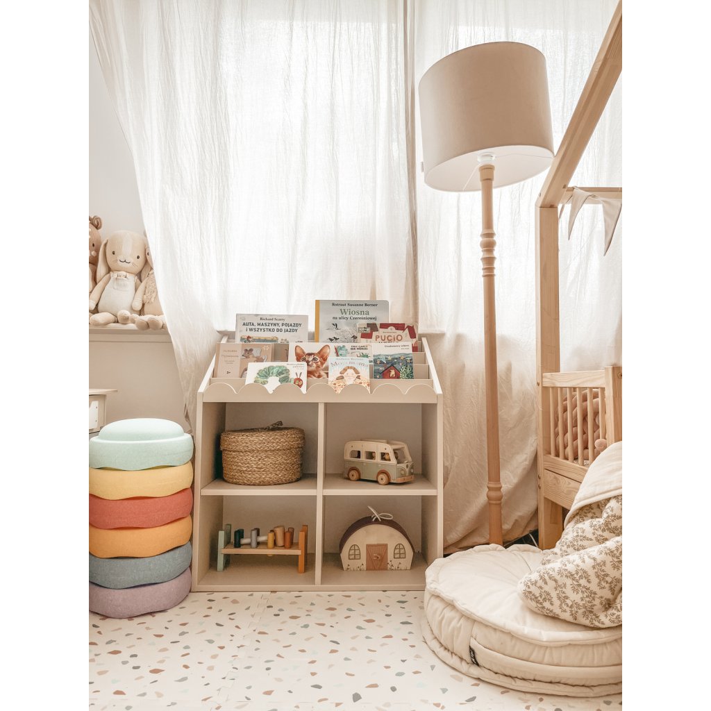 Predstavujeme detskú domčekovú knižnicu, ktorá poskytne dokonalý priestor na organizáciu knižiek, hračiek a dekoračných predmetov. Elegantný dizajn v neutrálnom odtieni béžovej sa dokonale hodí do každej detskej izby a prináša harmóniu a štýl.