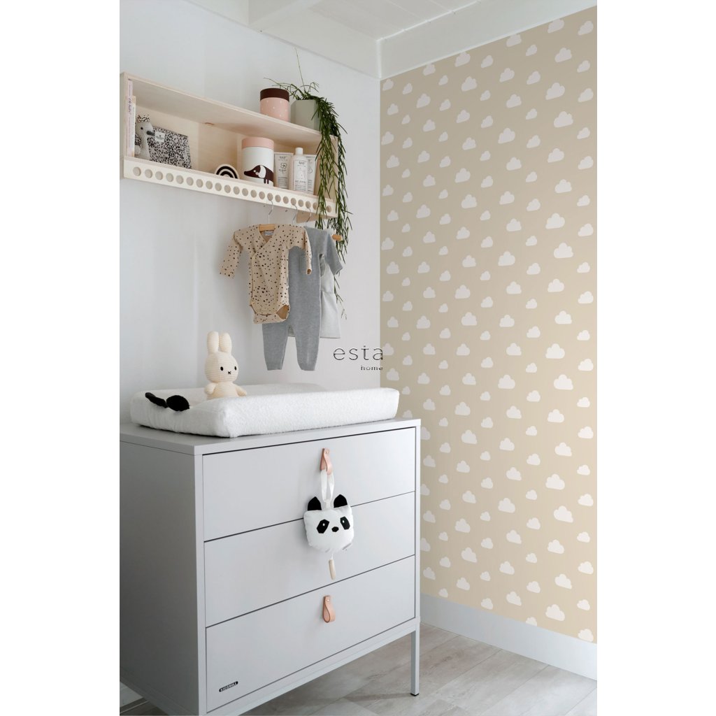 Privítajte pokoj a jemnosť v detskej izbe s touto nádhernou vliesovou tapetou s béžovými obláčikmi. Dokonale sa hodí pre novorodeneckú izbu, vytvára teplú a upokojujúcu atmosféru pre vaše bábätko. Elegantný dizajn z dielne ESTA Home prináša štýl aj bezpečnosť do každého detského priestoru.