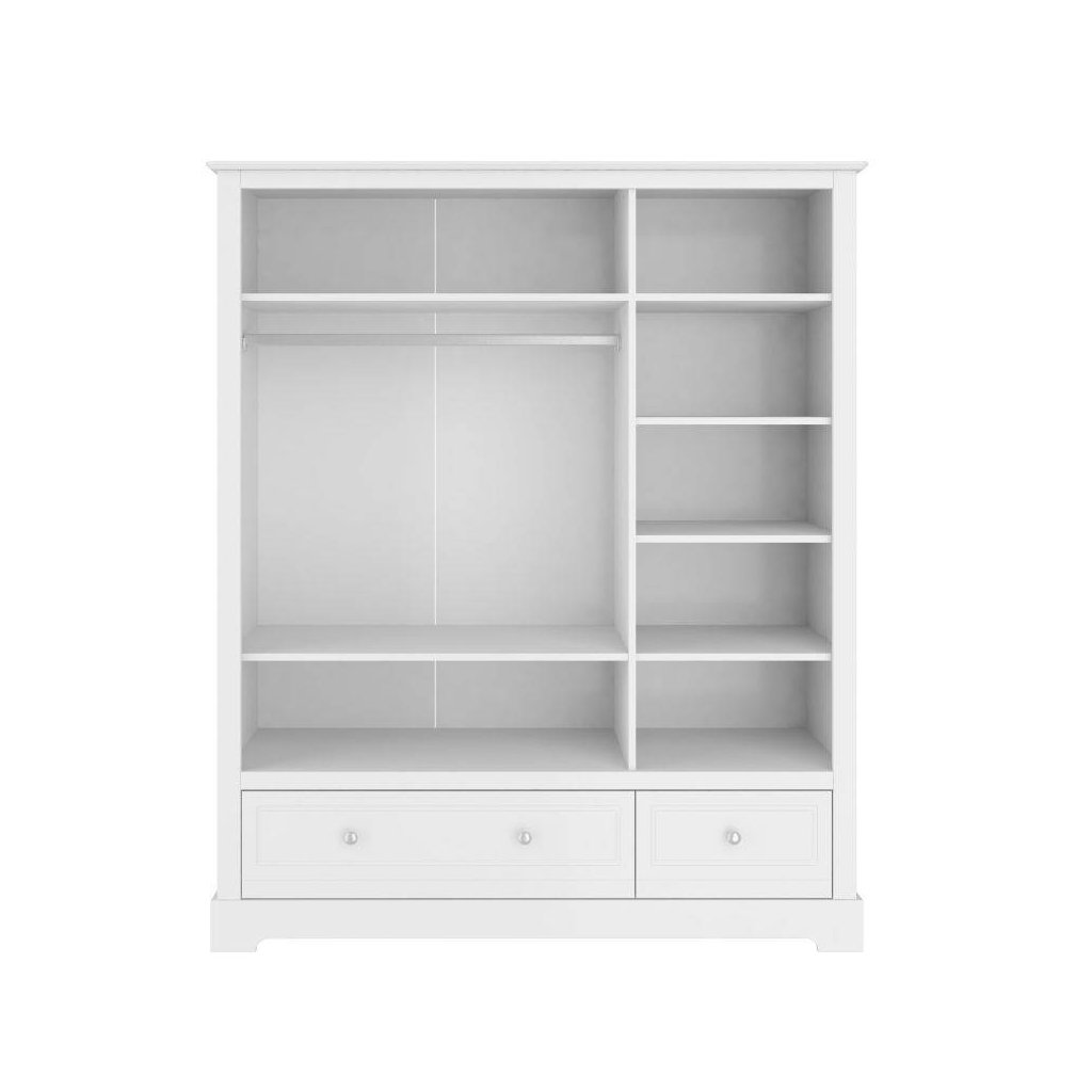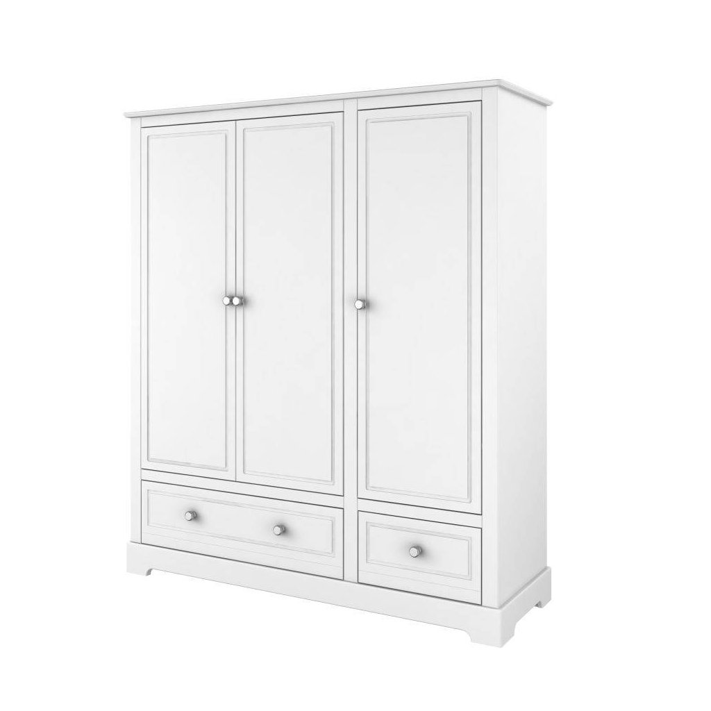 Krásna biela skriňa, ktorá je nielen priestranná, ale aj elegantná. Krásne zakončené okrúhlymi gombíkmi a štýlovou ozdobnou základňou. Určite vám pomôže zorganizovať si miesto na odkladanie oblečenia a doplnkov. Nábytok balený v plochých baleniach, vyžaduje vlastnú montáž.