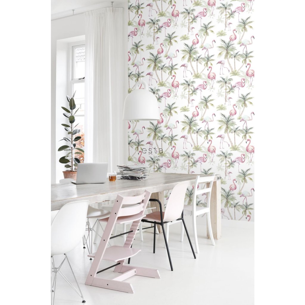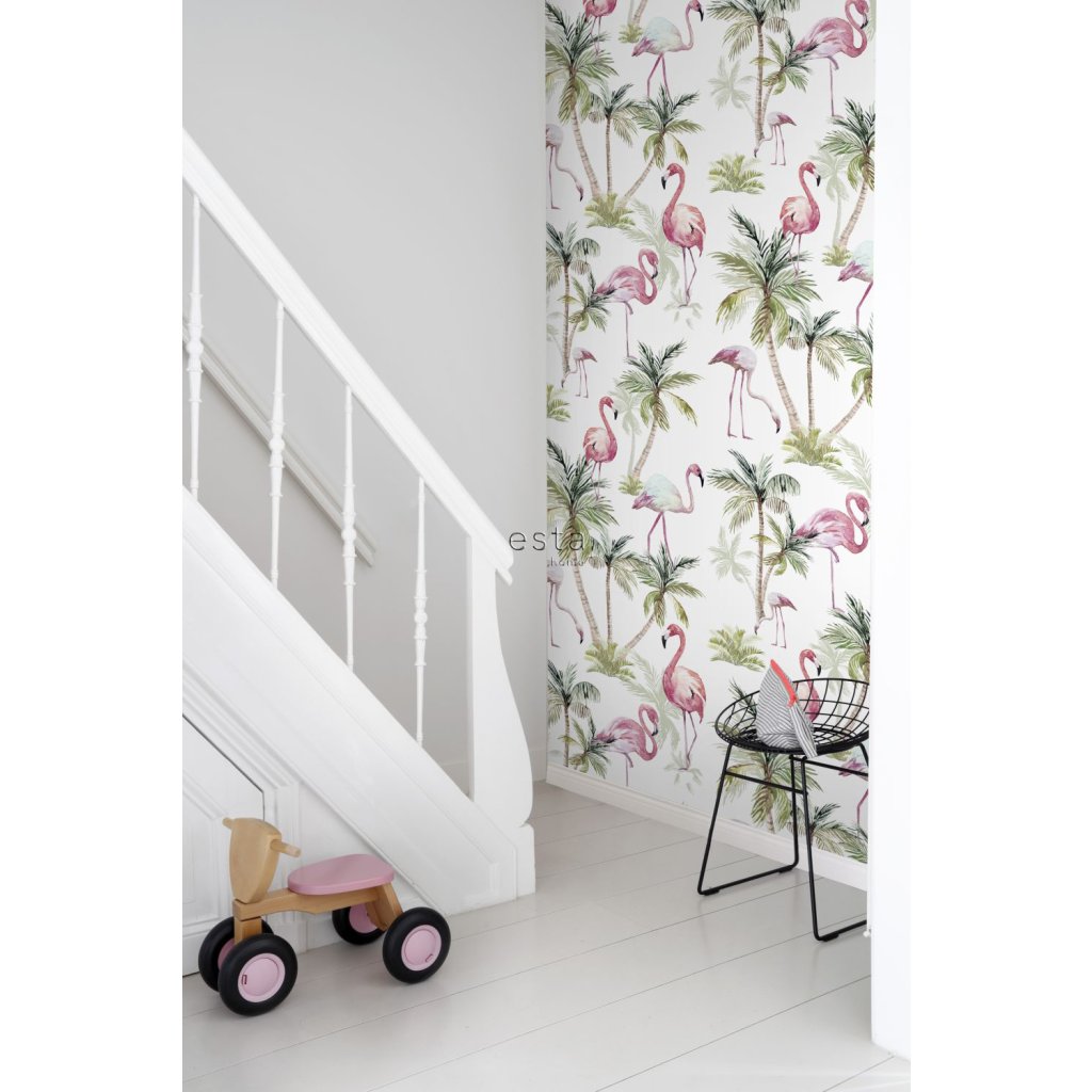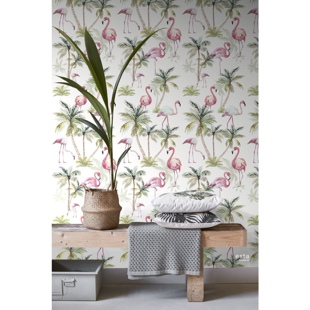 Ozdobte svoje steny touto nádhernou exotickou potlačou s plameniakmi v ružovej farbe a vytvorte si vlastnú mestskú džungľu.