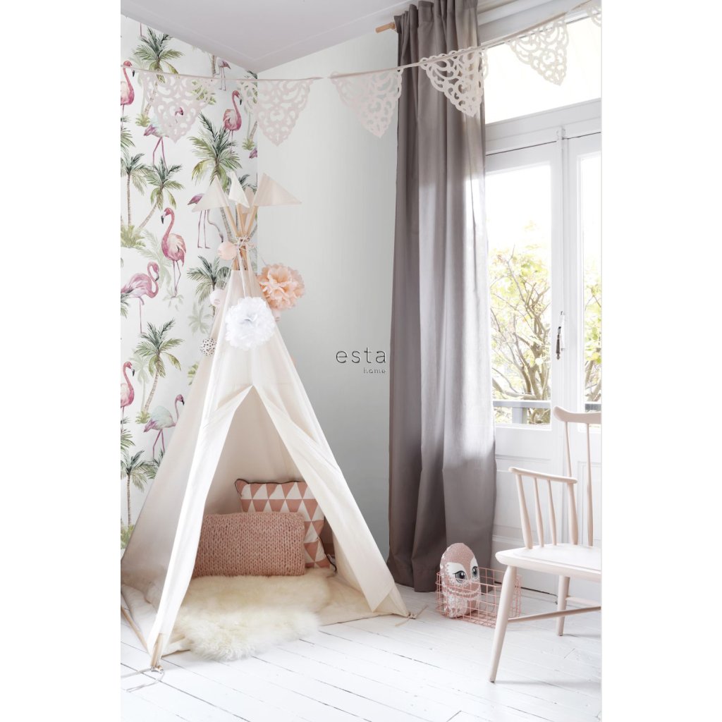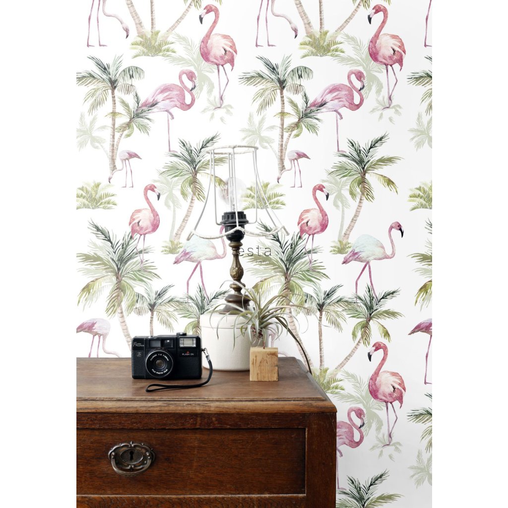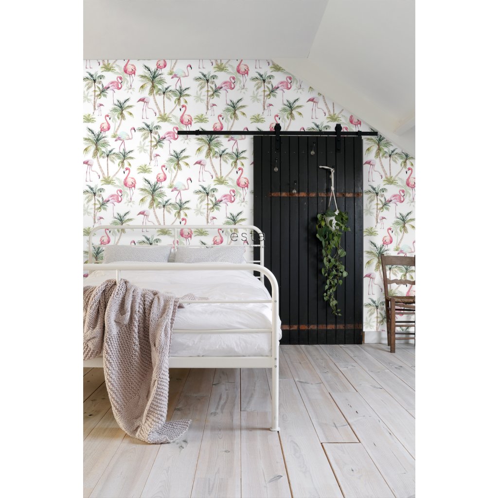 Ozdobte svoje steny touto nádhernou exotickou potlačou s plameniakmi v ružovej farbe a vytvorte si vlastnú mestskú džungľu.