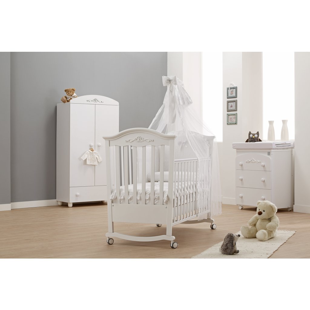 Praktická detská komoda s 3 priestrannými zásuvkami. Ku komode odporúčame dokúpiť prebaľovaciu podložku alebo externý drevený rám na PVC podložku.