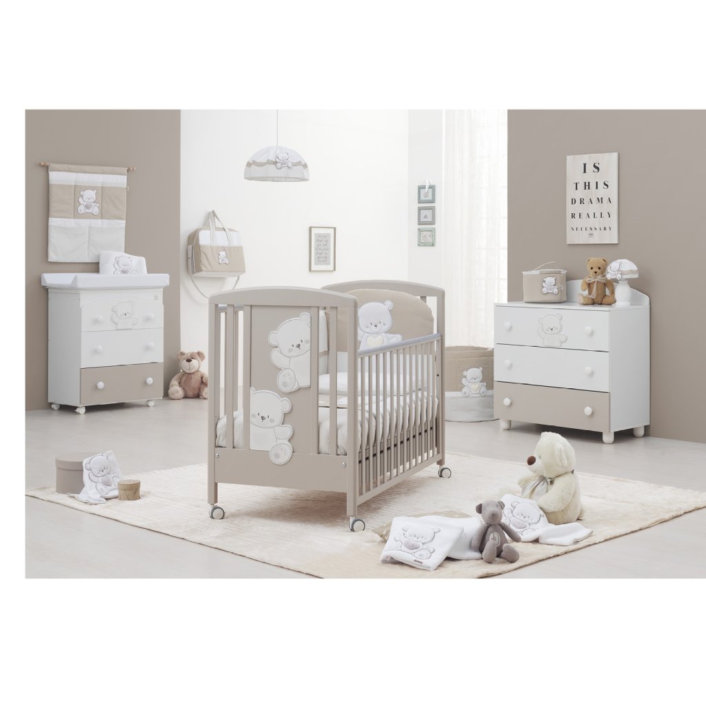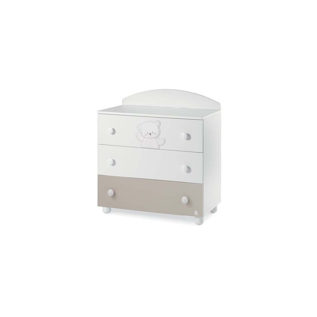 Praktická detská komoda s 3 priestrannými zásuvkami. Ku komode odporúčame dokúpiť prebaľovaciu podložku alebo externý drevený rám na PVC podložku.