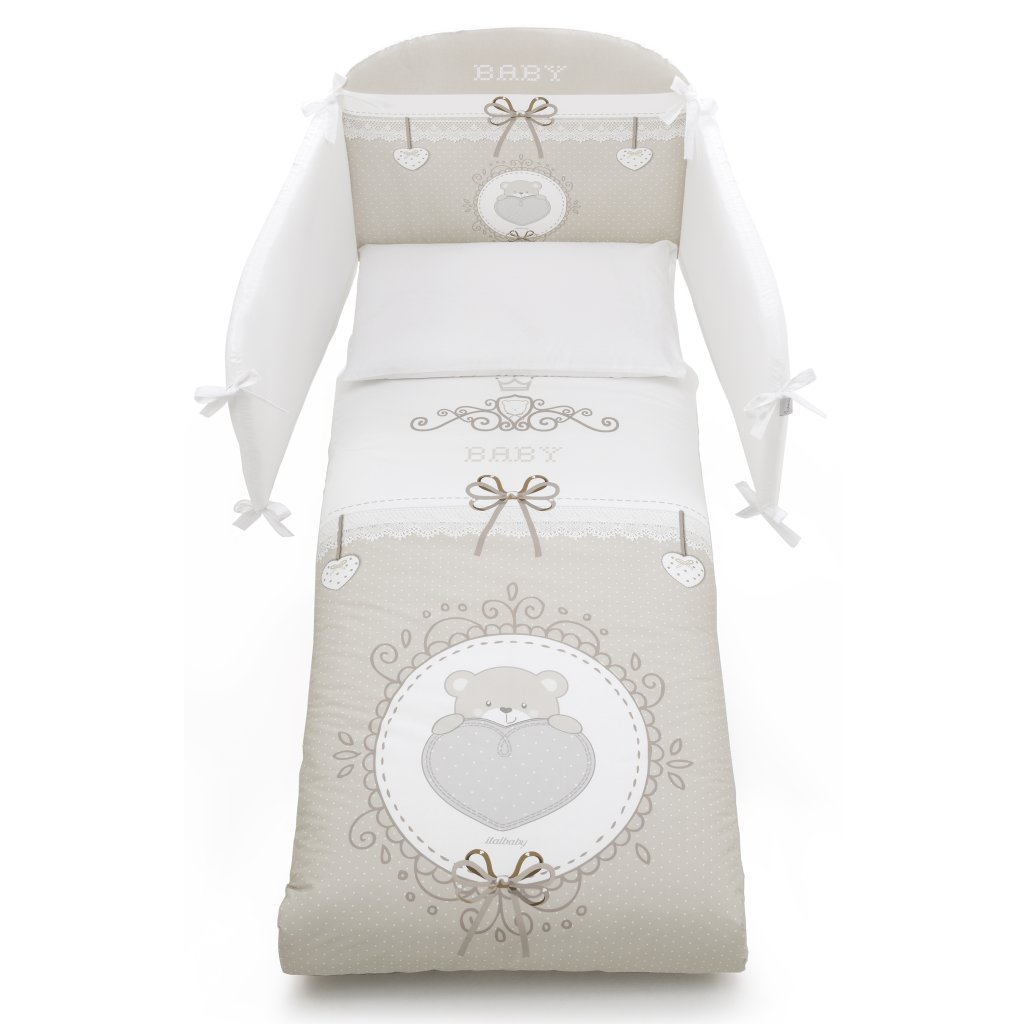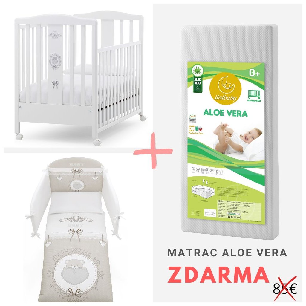 Italbaby detská postieľka so spúšťacím bokom Baby Chic s komplet výbavou biela/béžová + matrac ZDARMA