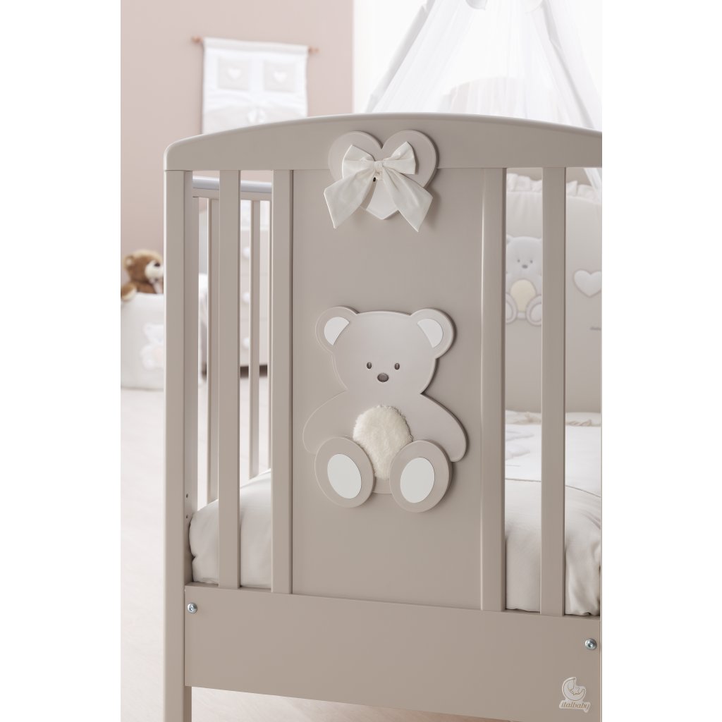 Postieľka je masívna a pevná, svojim dizajnom pôsobí veľmi elegantne. V spodnej časti má priestrannú zásuvku na odkladanie potrebných vecí pre bábätko. Rošt je polohovateľný v dvoch polohách a zároveň má posuvnú bočnicu smerom nadol, čím získa mamička ľahký prístup k bábätku. Postieľka Italbaby je vyrobená s ohľadom na bezpečnosť a pohodlie bábätka, hrazdičky sú umiestnené tak, aby sa predišlo akémukoľvek nebezpečenstvu.