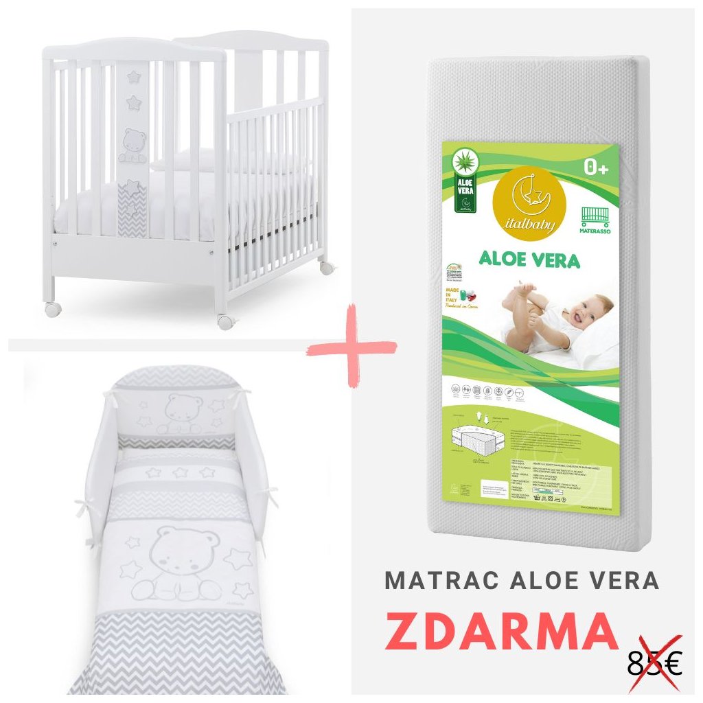 Italbaby detská postieľka so spúšťacím bokom Pop Star s komplet výbavou biela/šedá + matrac ZDARMA