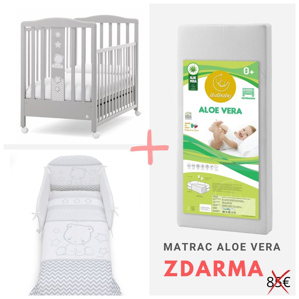 Italbaby detská postieľka so spúšťacím bokom Pop Star s komplet výbavou šedá + matrac ZDARMA