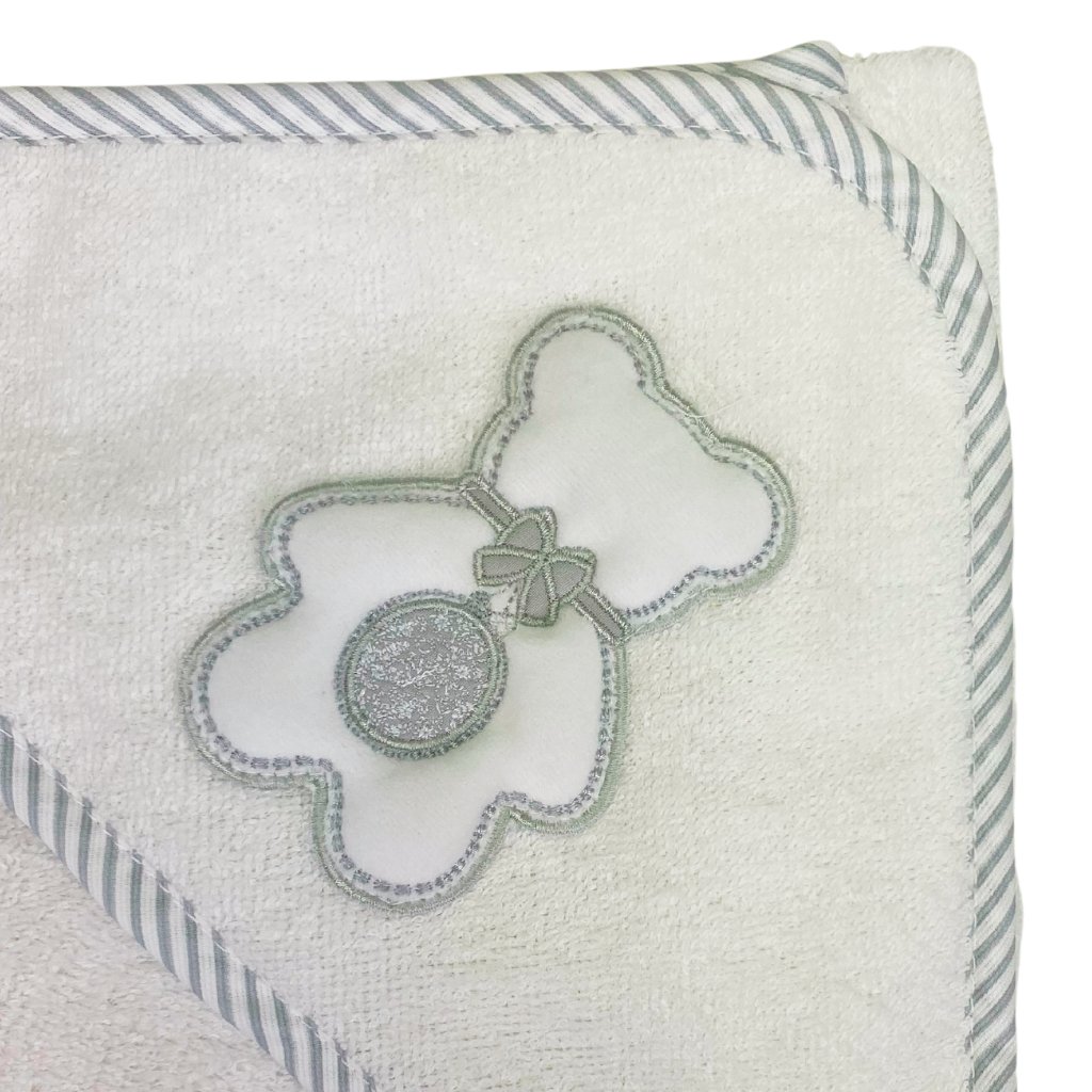 Bavlnená froté osuška pre novorodenca s kapucňou a žinkou v darčekovej krabičke. Vyrobené zo 100% certifikovanej bavlny v Taliansku. Ideálne ako darček.