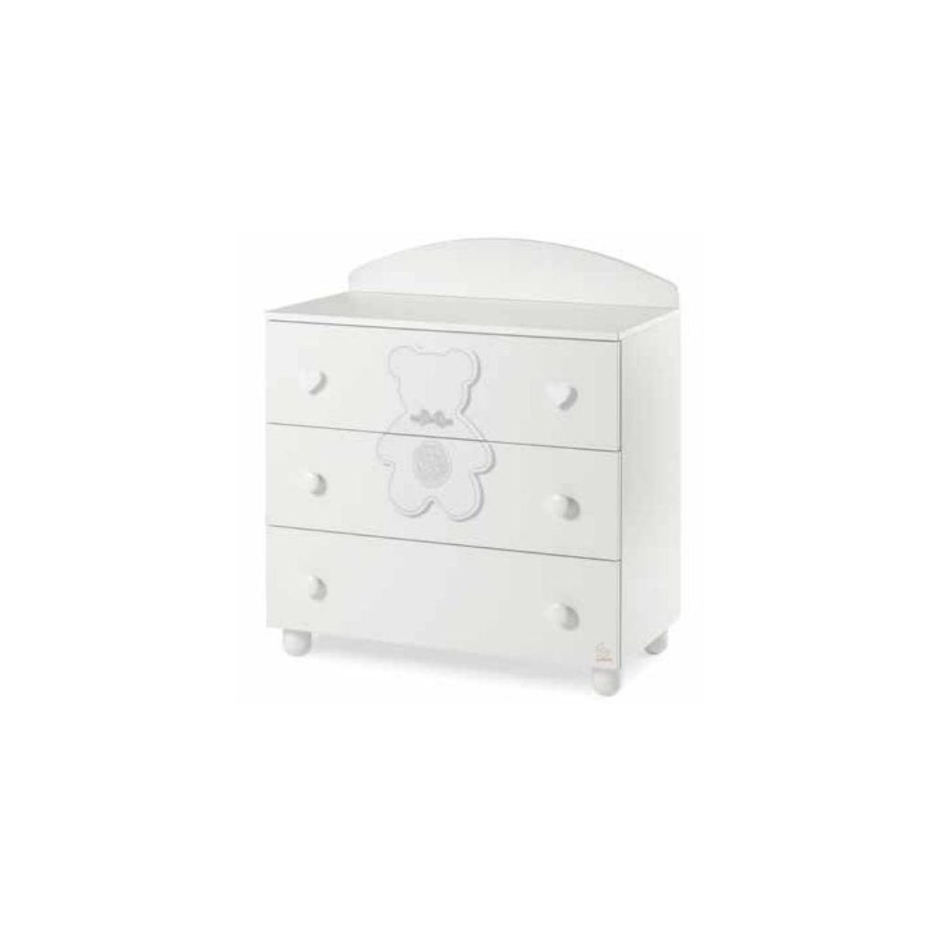Praktická detská komoda s 3 priestrannými zásuvkami. Ku komode odporúčame dokúpiť prebaľovaciu podložku alebo externý drevený rám na PVC podložku.