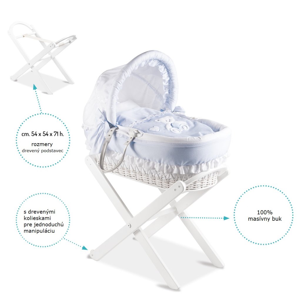 Prútený košík so strieškou z kolekcie Sweet Star. Vďaka uškám je možné košík prenášať. V cene je košík, matrac a textílie.