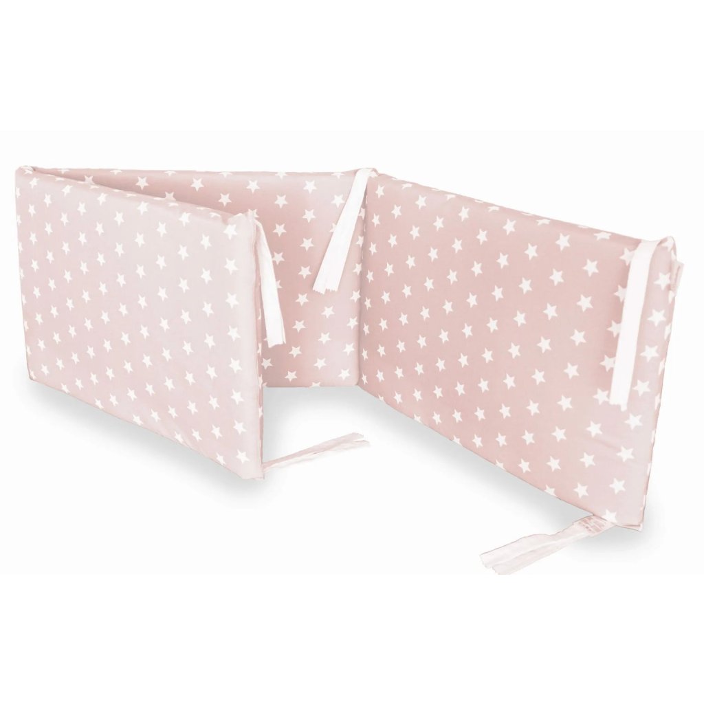 Univerzálny mantinel do postieľky v ružovej farbe. Tento mantinel je vhodný pre postieľky 60x120 cm alebo 63x125 cm (talianske postieľky).