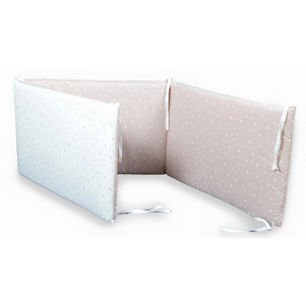 Univerzálny mantinel do postieľky v ružovej farbe. Tento mantinel je vhodný pre postieľky 60x120 cm alebo 63x125 cm (talianske postieľky).