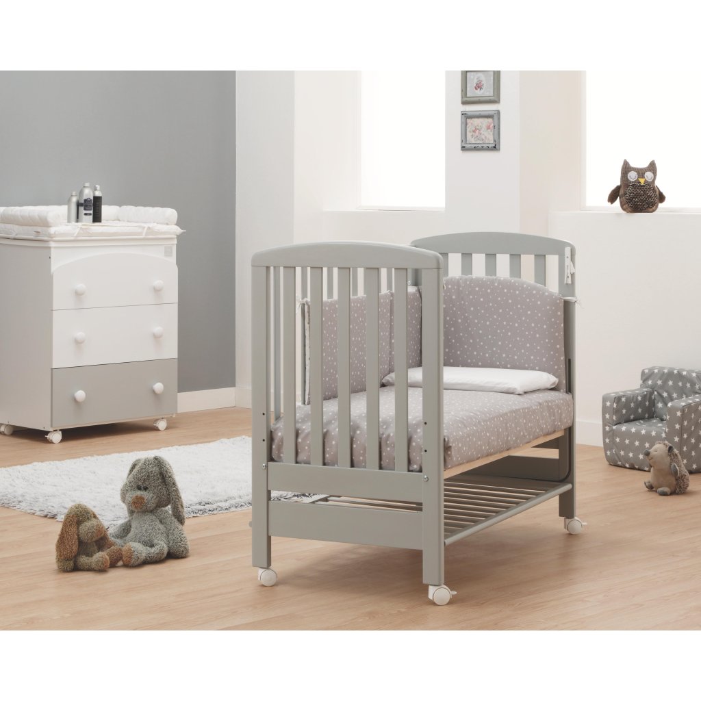 Italbaby mini detská postieľka s matracom a komplet výbavou B.Side (2v1) - šedá