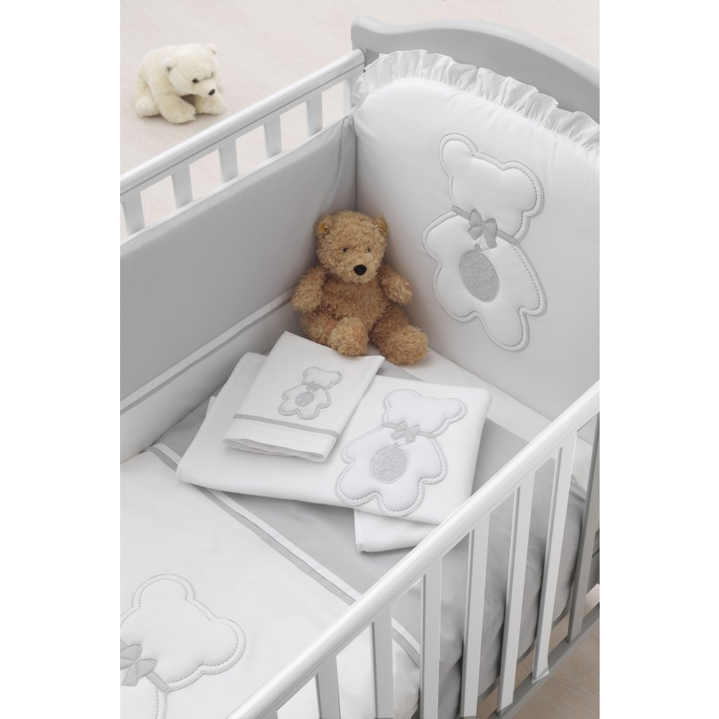 Farba: postieľka biela, dekorácia medvedík biela/šedá