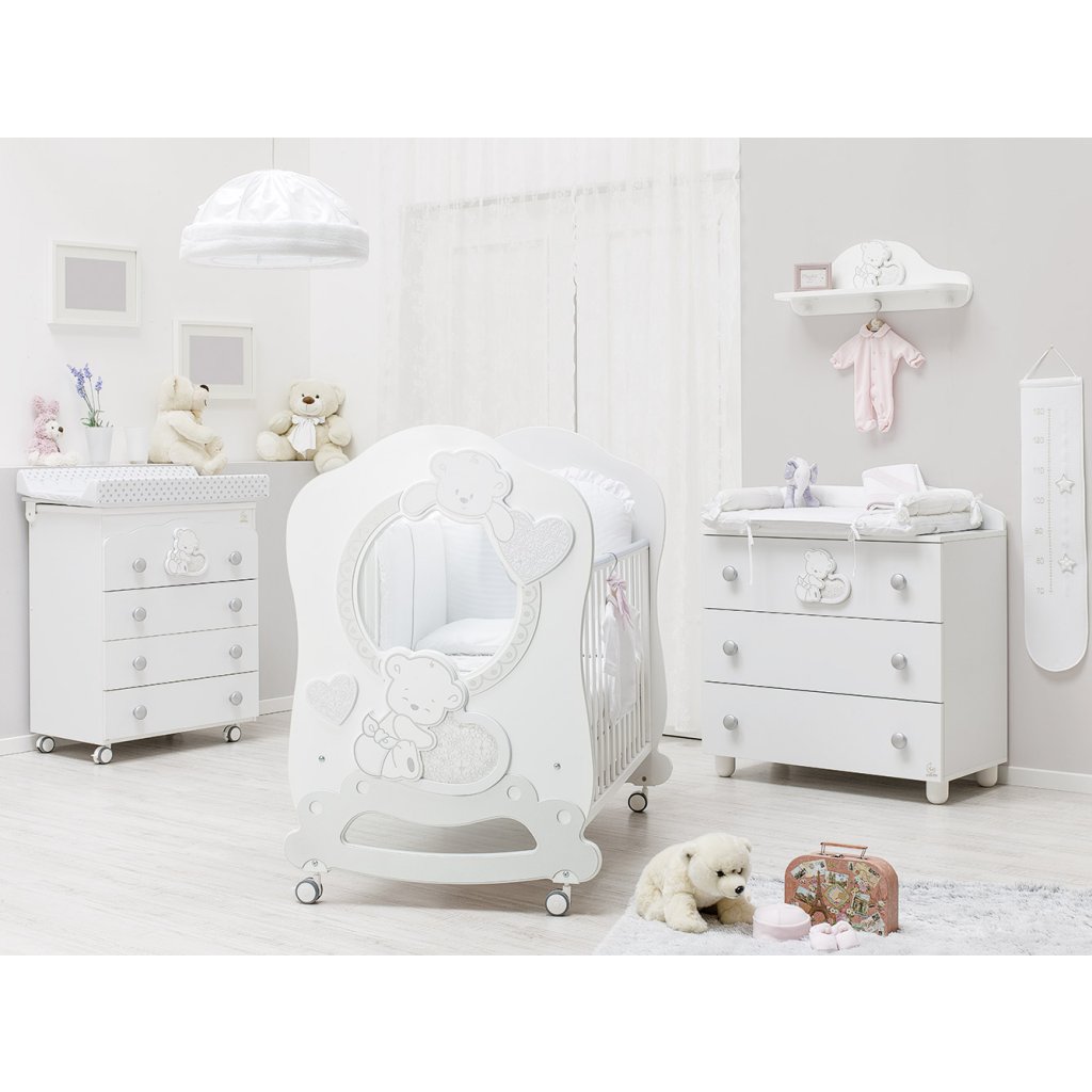 Talianska postieľka s posuvnými bočnicami. K postieľke je možné dokúpiť kompletnú kolekciu z izbičky Love ako komodu, skriňu a doplnky do detskej izbičky.