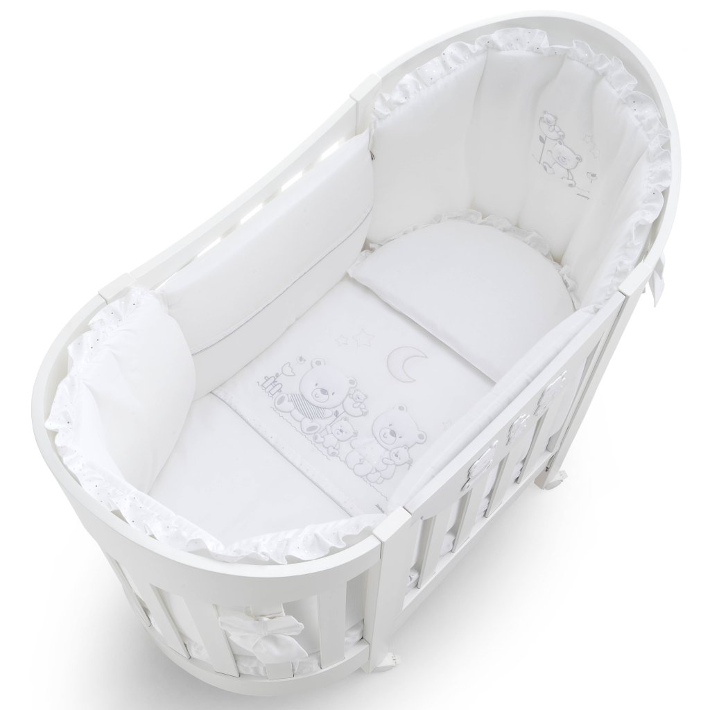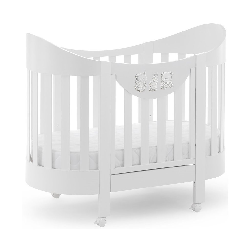 Luxusná postieľka Ovale - moderný dizajn a elegancia. Postieľka sa dodáva s matracom a komplet textilom Happy Family.
