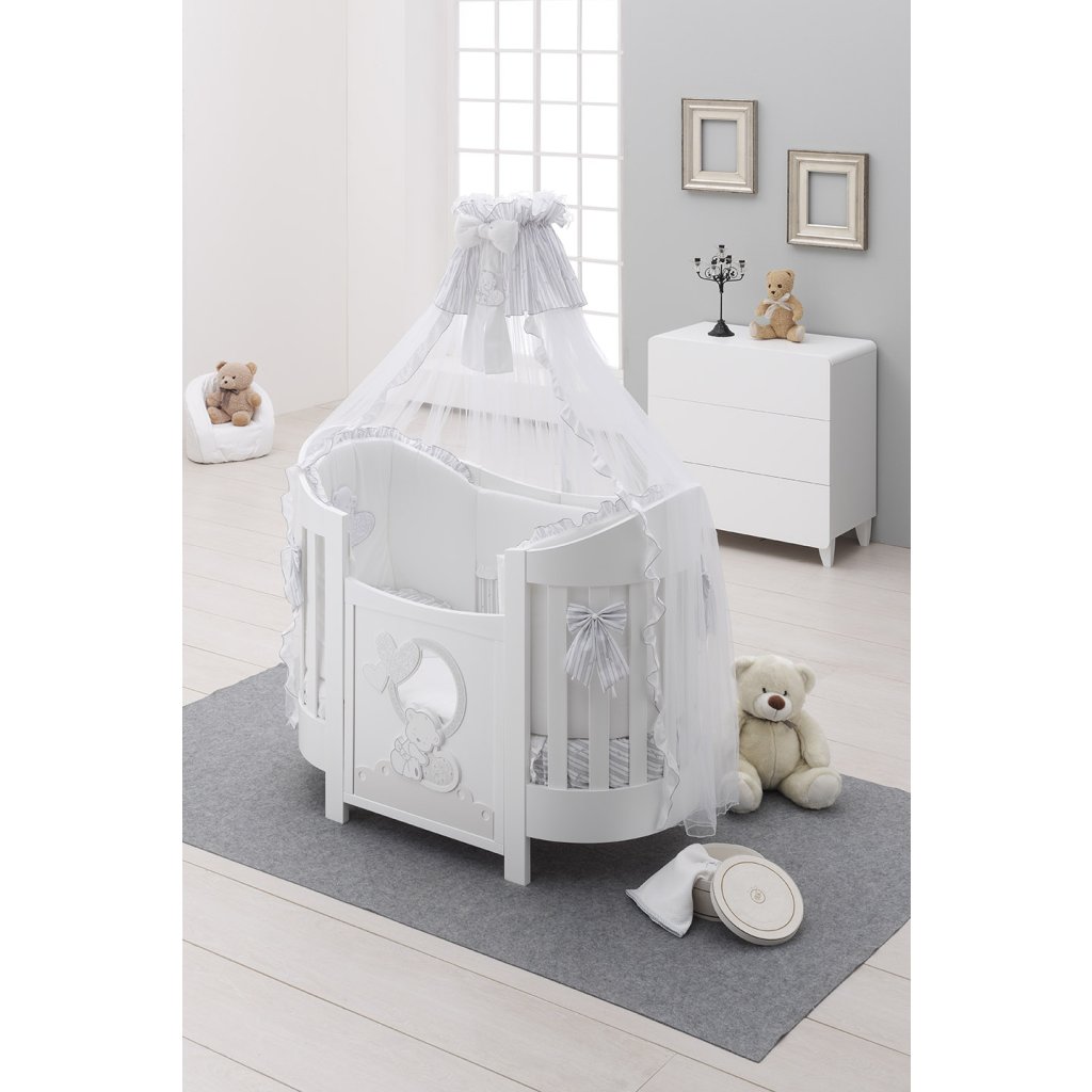 Italbaby oválna postieľka s matracom a komplet výbavou Love biela