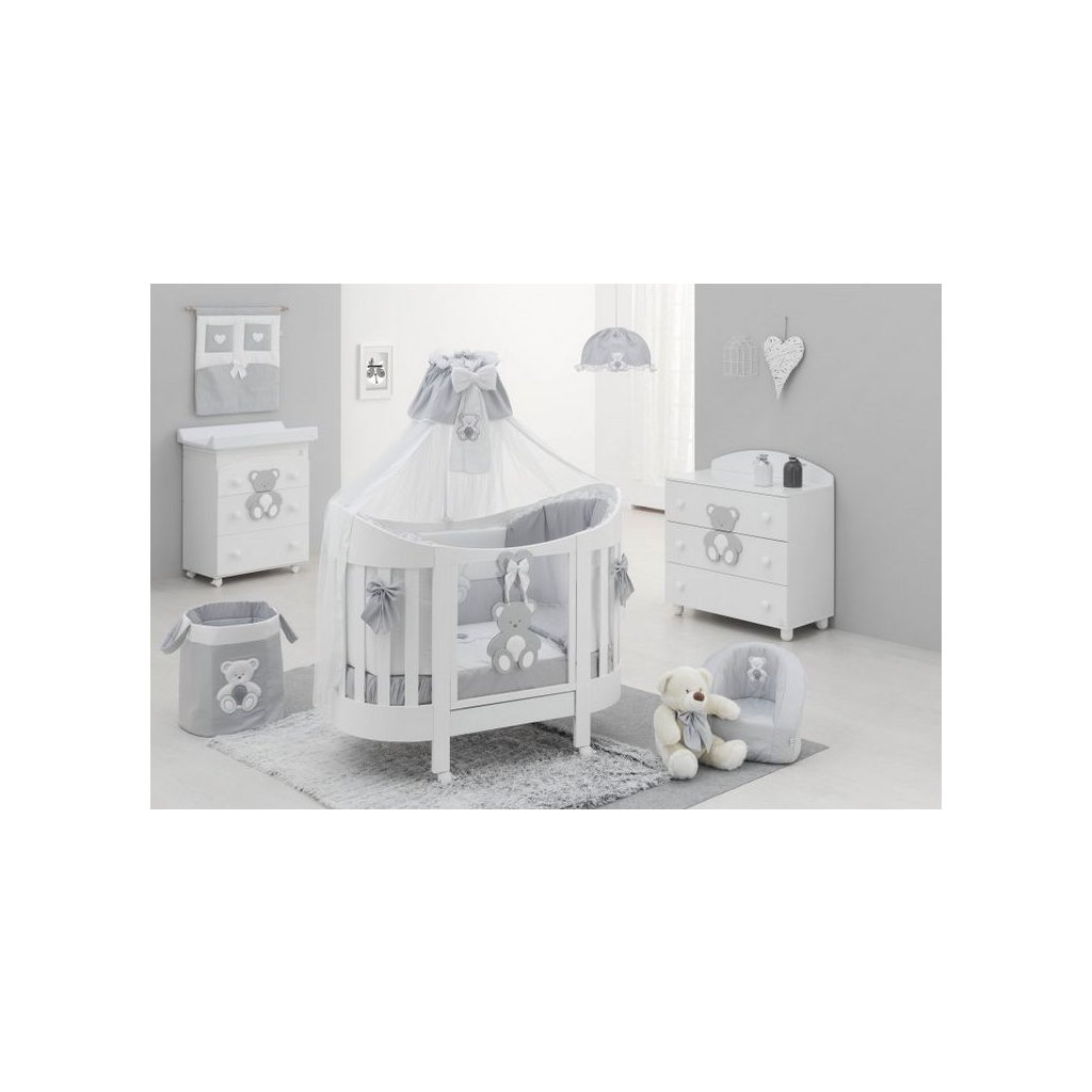 Italbaby oválna postieľka s matracom a komplet výbavou Peluche bielo-šedá