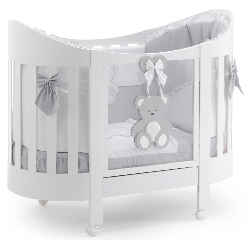 Luxusná postieľka Ovale - moderný dizajn a elegancia. Postieľka sa dodáva s matracom a komplet textilom Peluche.