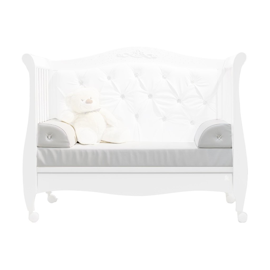 Sada obsahuje dva bočné vankúše z umelej kože so vsadenými kamienkami a matrac z umelej kože. Dostupná v 2 farbách: biela a slonovinová