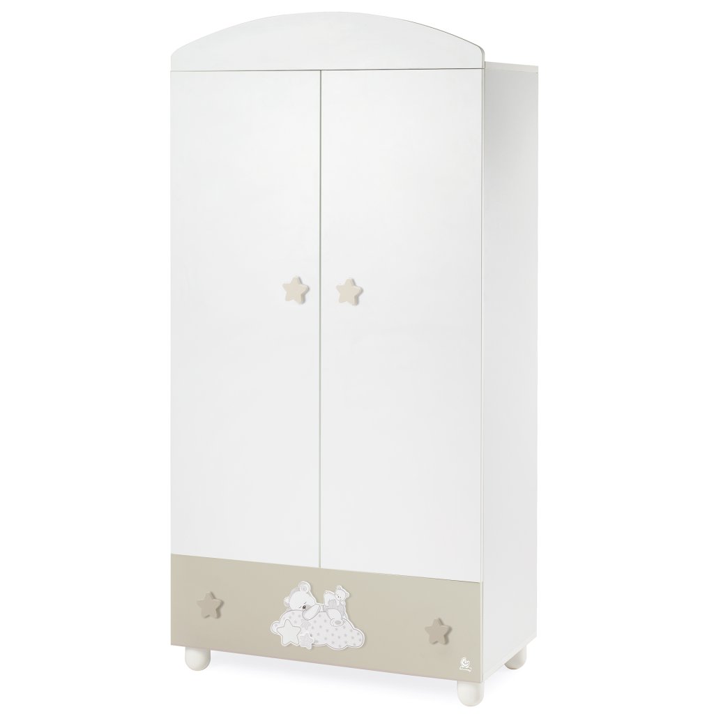 Dvojdverová skriňa do detskej izbičky má celú vrchnú časť vešiakovú, pod ňou je odkladací priestor. V spodnej časti skrine je zásuvka.
