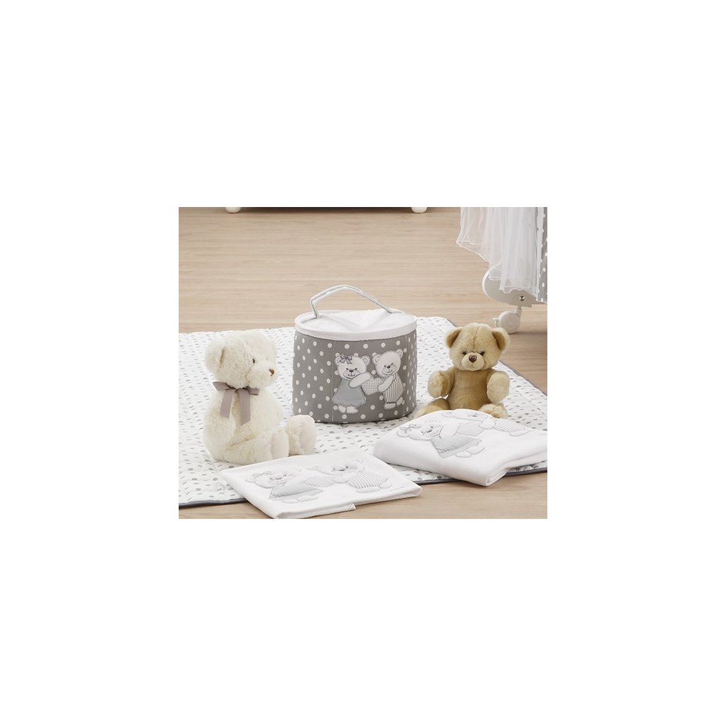 Rozkošný odkladací kozmetický box s medvedíkom s uškami na jednoduché prenášanie. Perfektné miesto na uloženie plienok, kozmetických potrieb. Tento box je praktickým pomocník pre každého, vďaka ktorému sa vecičky uložia na jedno miesto.