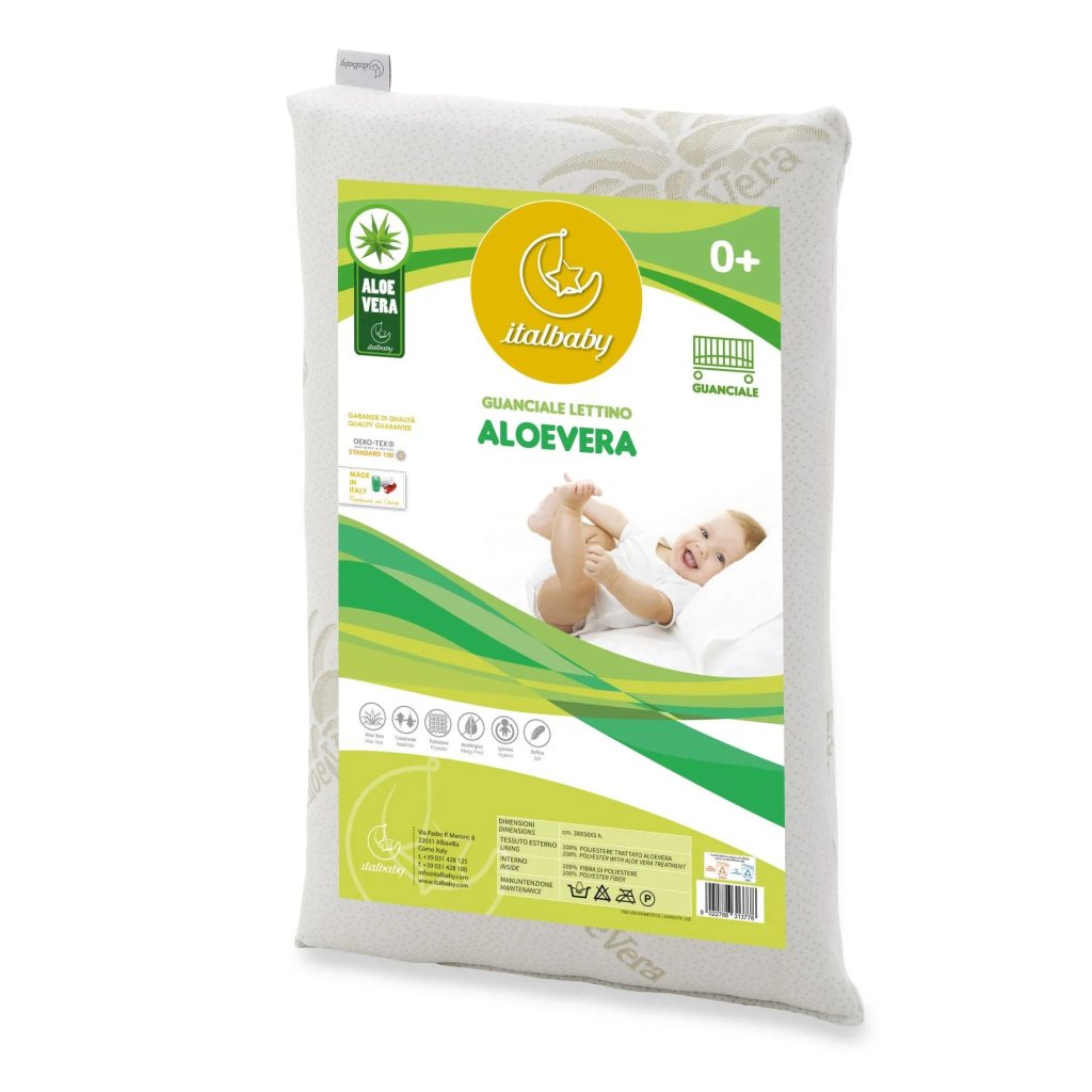 Italbaby vankúš Aloe Vera je navrhnutý s ohľadom na citlivú detskú pokožku. Jeho antialergické vlastnosti zaručujú, že je ideálny pre novorodencov. Vďaka špeciálnemu ošetreniu Aloe Vera poskytuje jemnosť a ochranu pred podráždením.