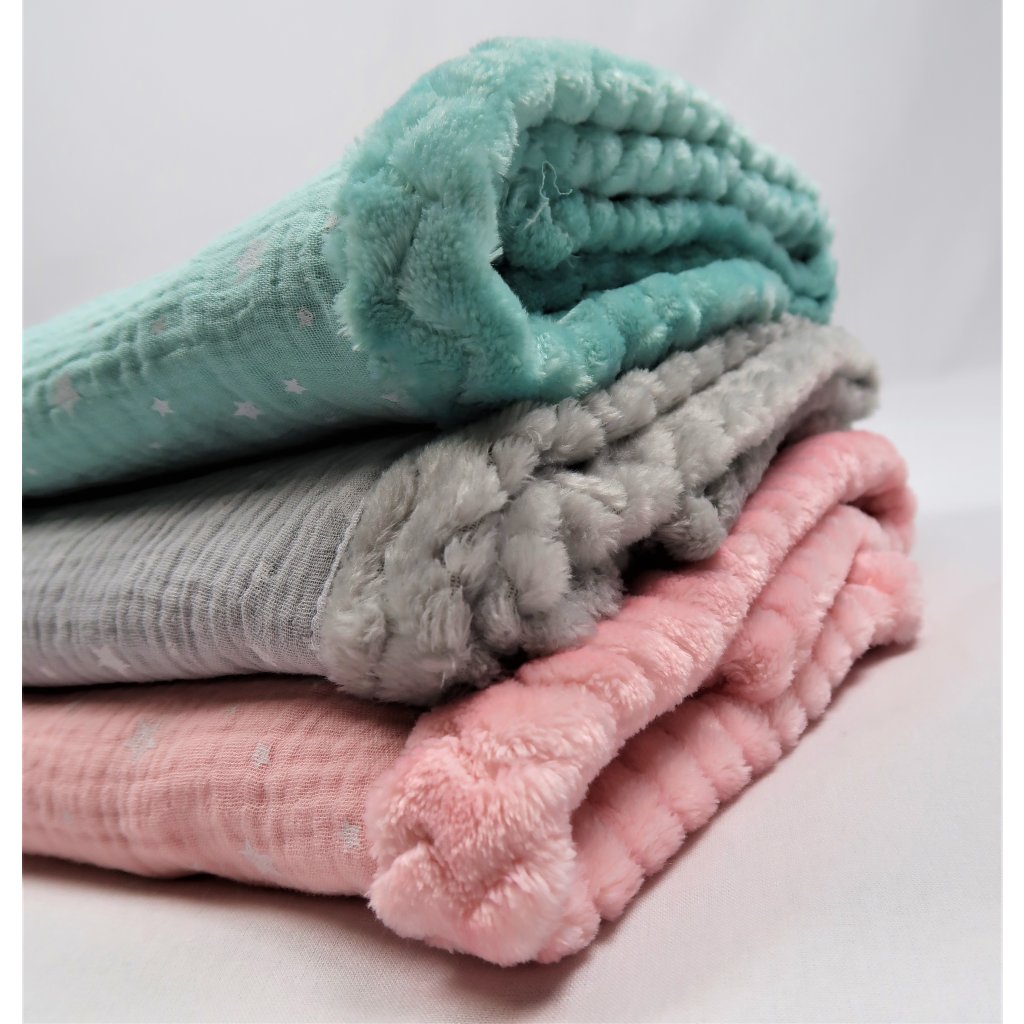 Teplučká jemná zimná deka do kočíka, z jednej strany 100% mušelinová bavlna a z druhej strany je jemný plyš. Dostupná vo viacerých farbách.