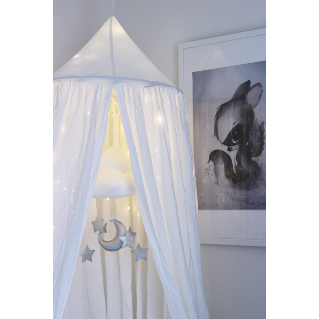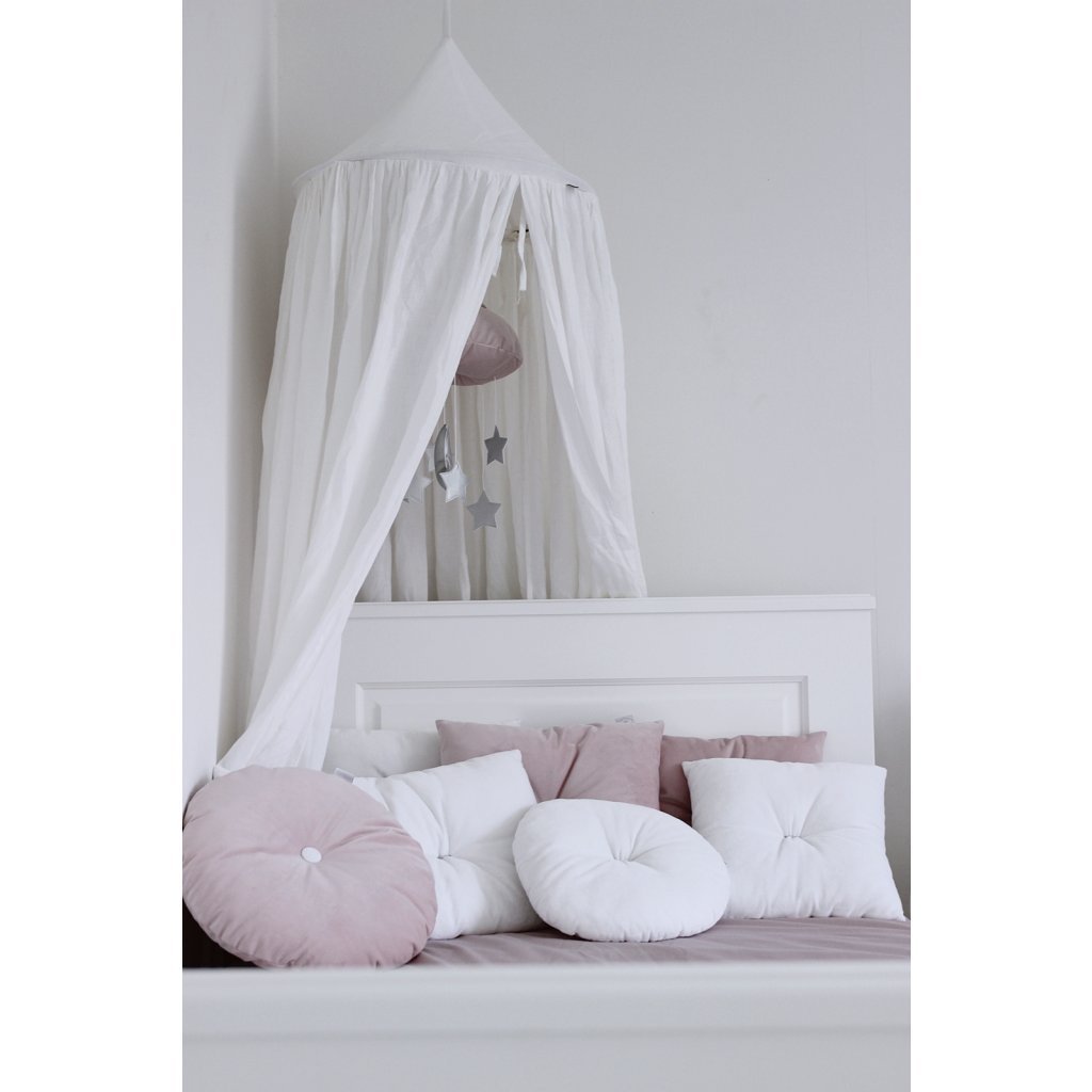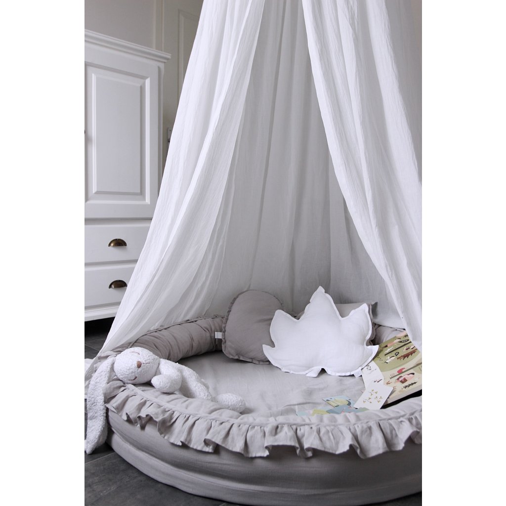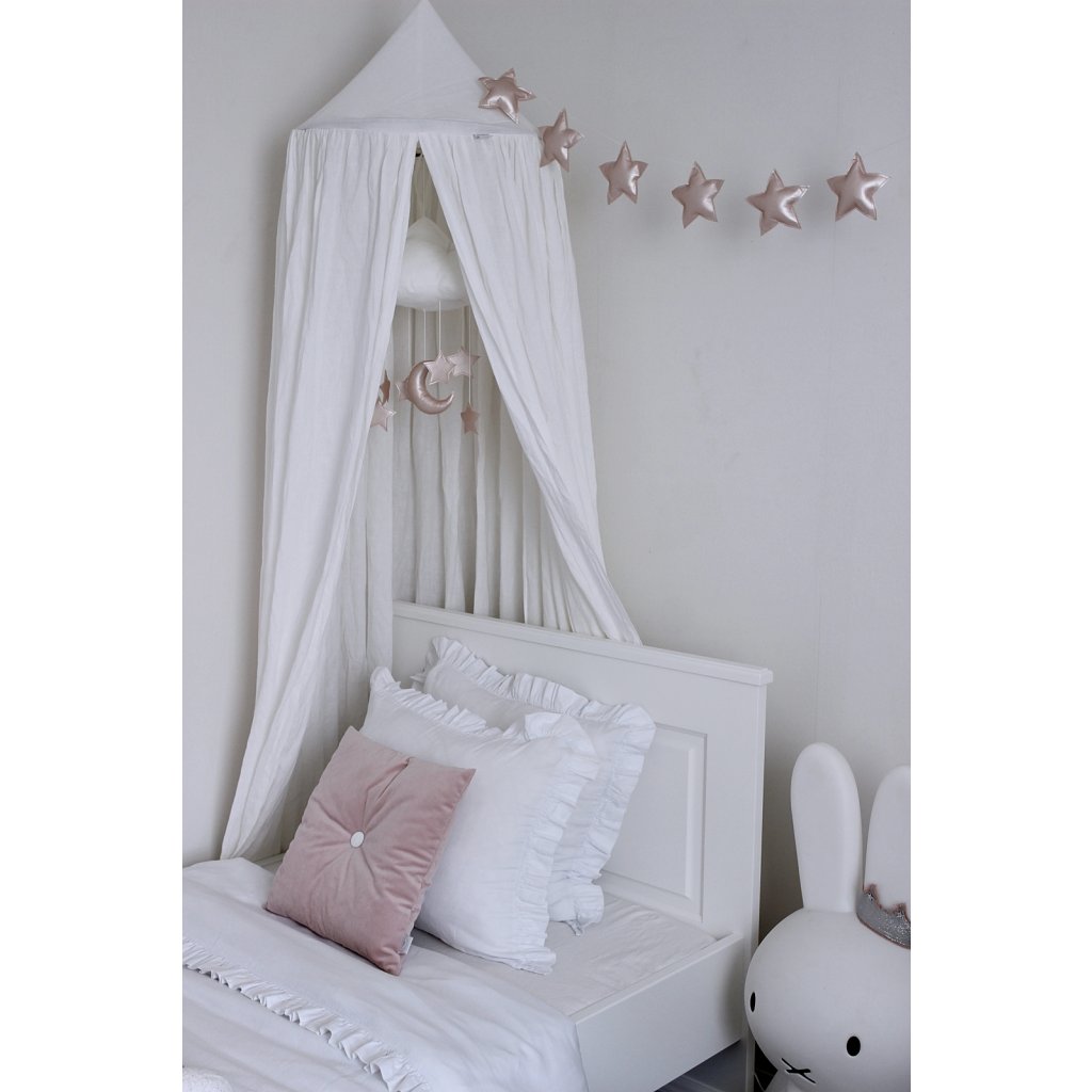 Baldachýn zo 100% ľanu, ktorý je antialergický a antibakteriálny - ideálny pre deti. Baldachýn je ľahký ako pavučinka a príjemný na dotyk.