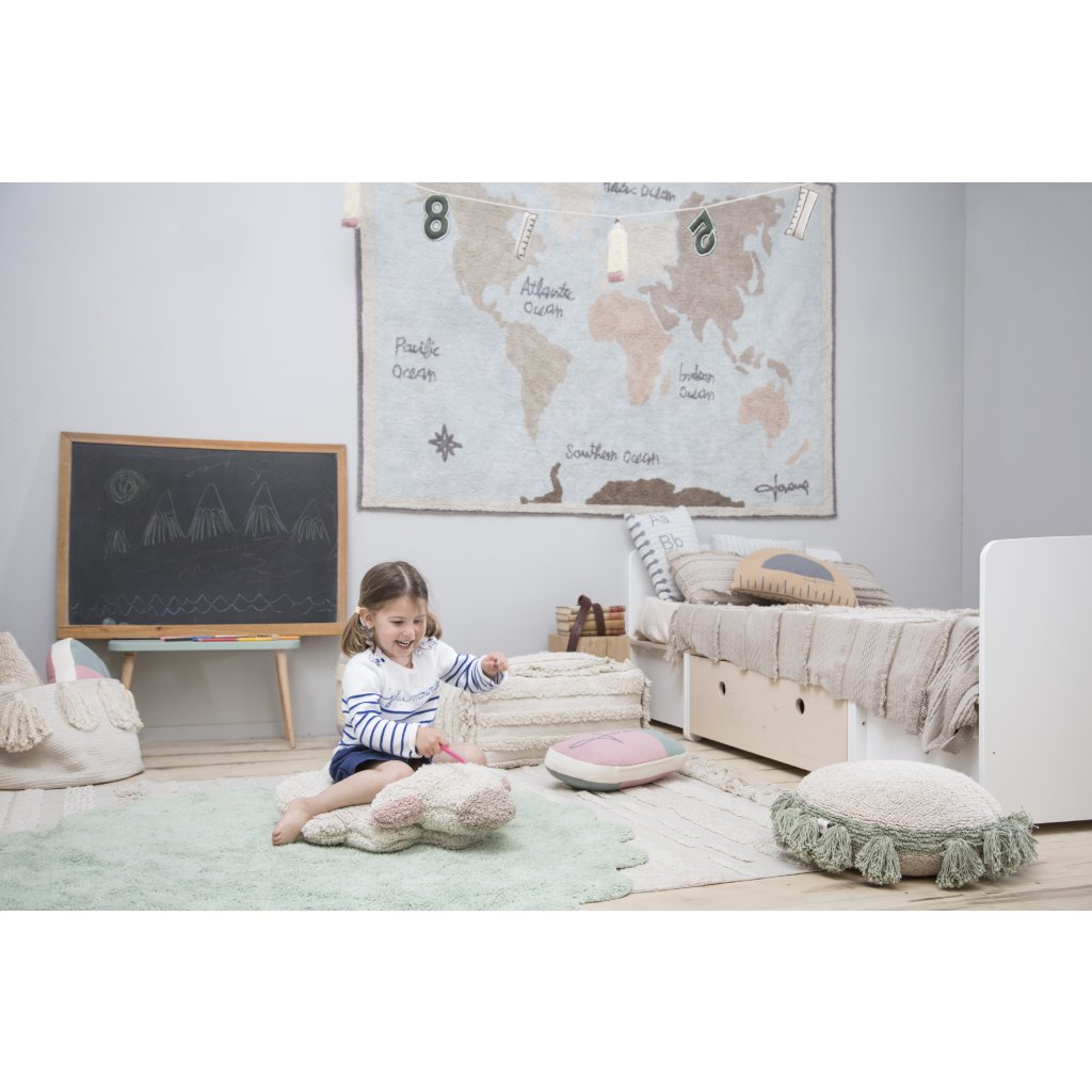 Ručne tkaný bavlnený detský koberec, ktorý môžete prať v domácej PRAČKE !!! Koberec je vyrábaný zo 100% prírodnej bavlny, použitá najvyššia kvalita bavlny a len prírodné farbivá. Ideálne pre Vaše deti, vhodné pre alergikov. Rozmer: priemer 140 cm.