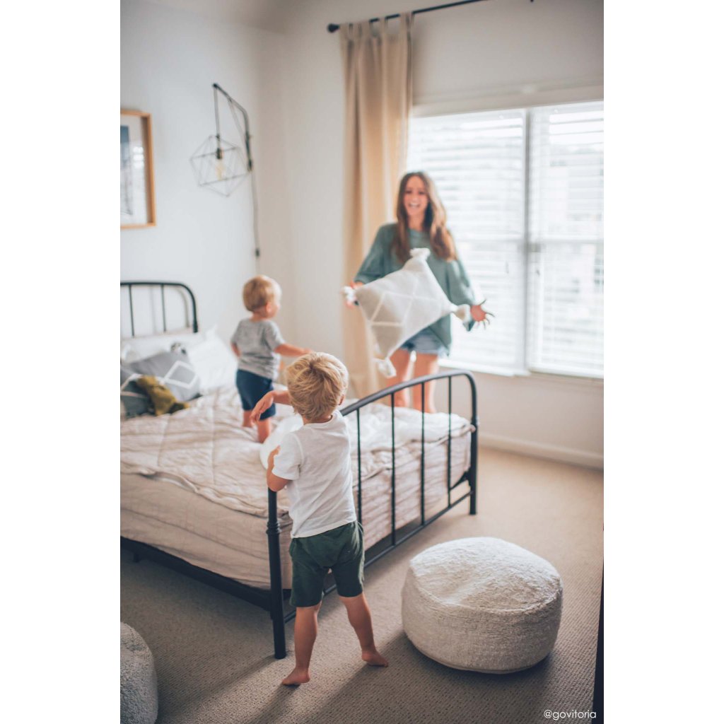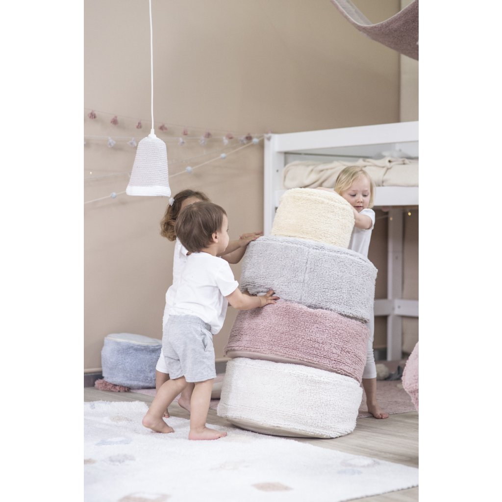 Ručne vyrobené bavlnené puff kreslo s rúčkou na prenášanie je ideálnym doplnkom do detskej izby. Vďaka svojej funkčnej veľkosti nezaberie veľa miesta. Poťah je snímateľný a dá sa oprať v domácej práčke, ideálne pre deti.