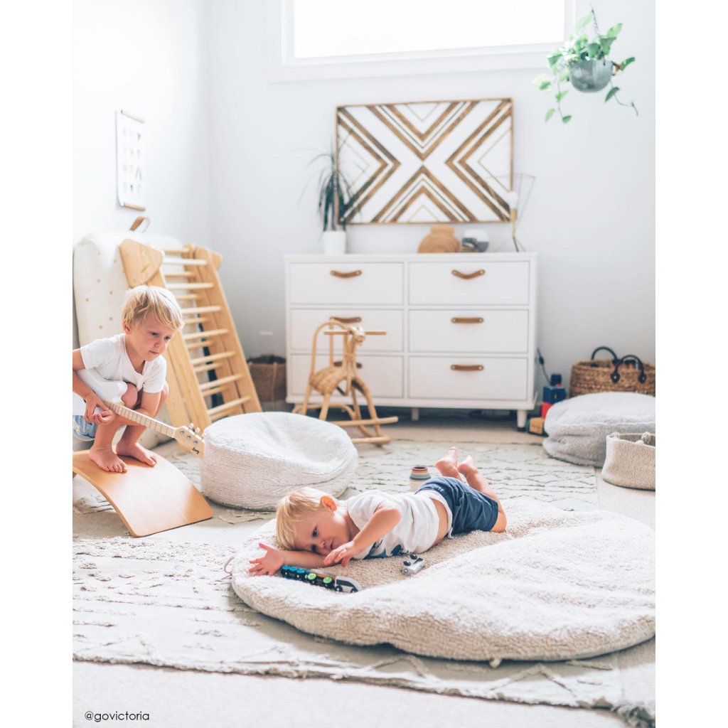 Ručne vyrobené bavlnené puff kreslo s rúčkou na prenášanie je ideálnym doplnkom do detskej izby. Vďaka svojej funkčnej veľkosti nezaberie veľa miesta. Poťah je snímateľný a dá sa oprať v domácej práčke, ideálne pre deti.