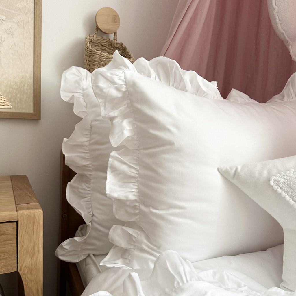 Margaret vankúš s volánom z prémiovej saténovej bavlny s výplňou - biely