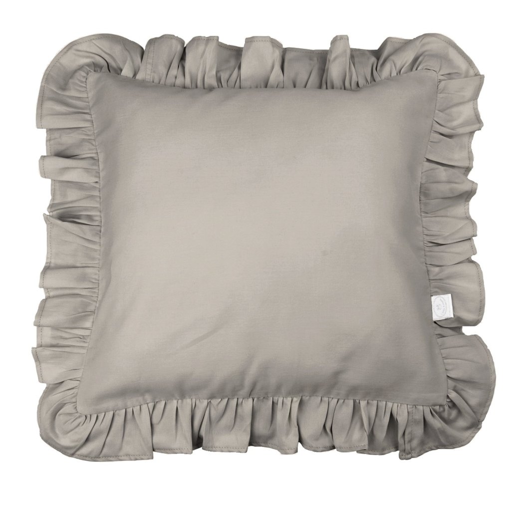 Margaret vankúš s volánom z prémiovej saténovej bavlny s výplňou - šedohnedá