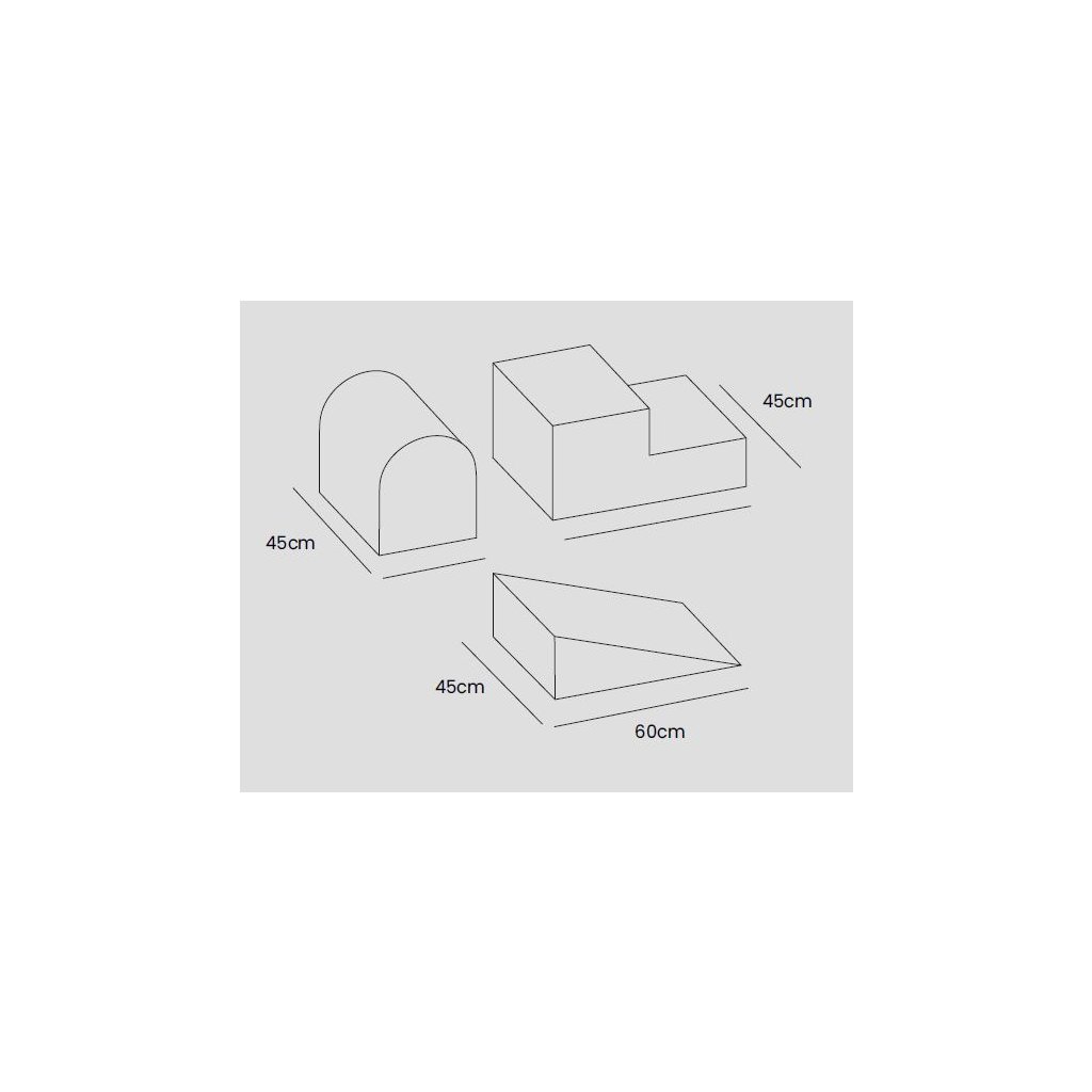 Zábava nepozná hranice! Teraz si môžete vytvoriť ihrisko vo svojom vlastnom dome! Hracie bloky nielen stimulujú detskú fantáziu, ale učia aj tvorivému mysleniu. 3 dielna sada modulov sa dá využiť na zábavu, ale aj na cvičenie, na vytváranie prekážkových dráh alebo priestorových štruktúr. Jednotlivé prvky možno použiť ako preliezačky alebo sedáky.