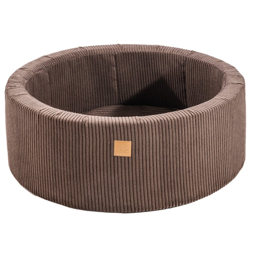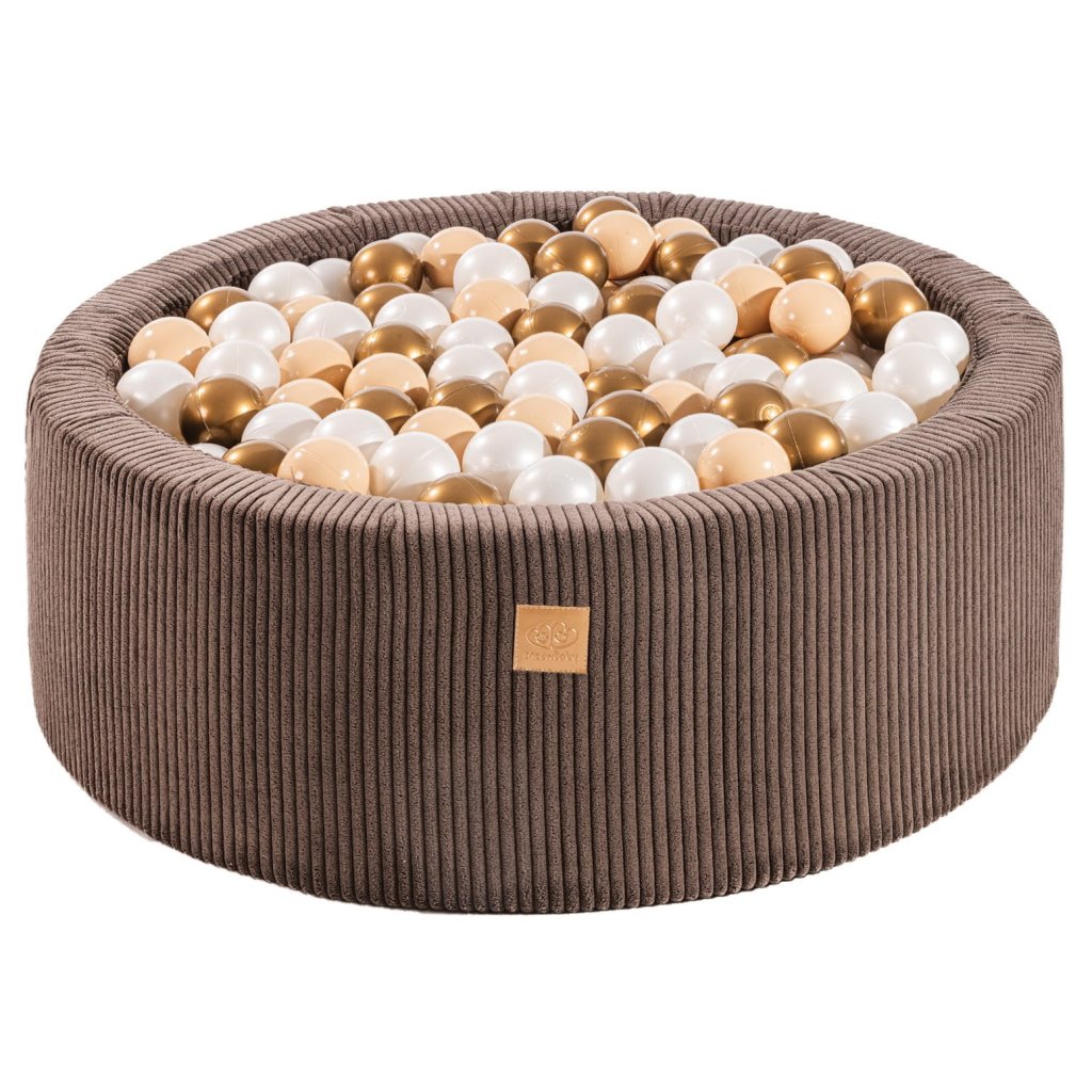 MeowBaby® Aesthetic detský suchý bazén s guličkami 90x30cm + 200 guličiek – hnedá, guličky: biela perleťová, zlatá, béžová