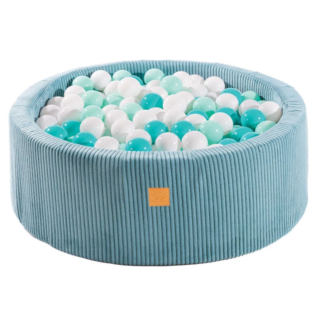 MeowBaby® Aesthetic detský suchý bazén s guličkami 90x30cm + 200 guličiek – modrá, guličky: biela, mätová, tyrkysová