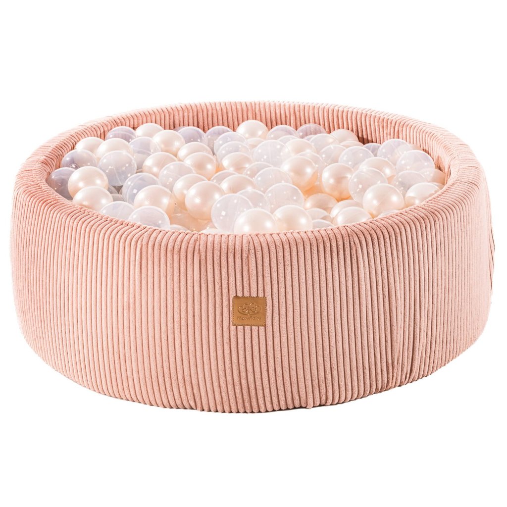 MeowBaby® Aesthetic detský suchý bazén s guličkami 90x30cm + 200 guličiek – ružová, guličky: biela perleťová