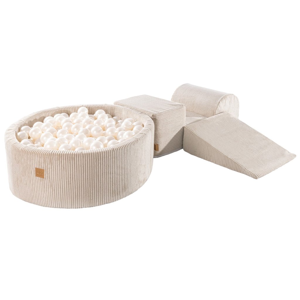 MeowBaby® Aesthetic Shape penové detské ihrisko s veľkým bazénom béžové + 200 loptičiek: perleťová biela