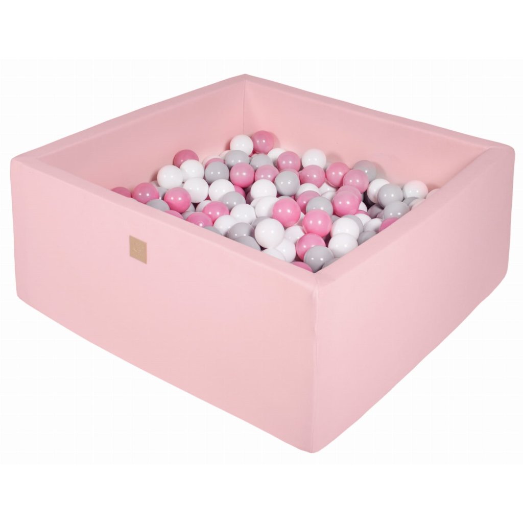 MeowBaby® Cotton detský suchý bazén s guličkami 110x110x40cm + 400 guličiek – ružová, guličky: biela/šedá/ružová