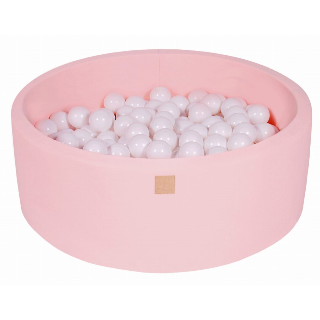 MeowBaby® Cotton detský suchý bazén s guličkami 90x30cm + 200 guličiek – ružová, guličky: biela