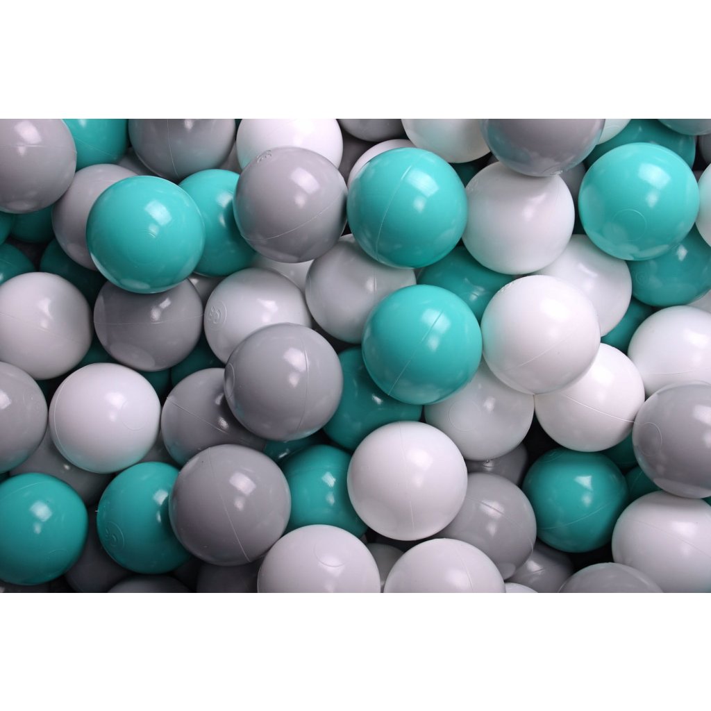 MeowBaby® SADA - certifikované plastové loptičky do suchého bazéna Ø7cm - šedá, biela, tyrkysová