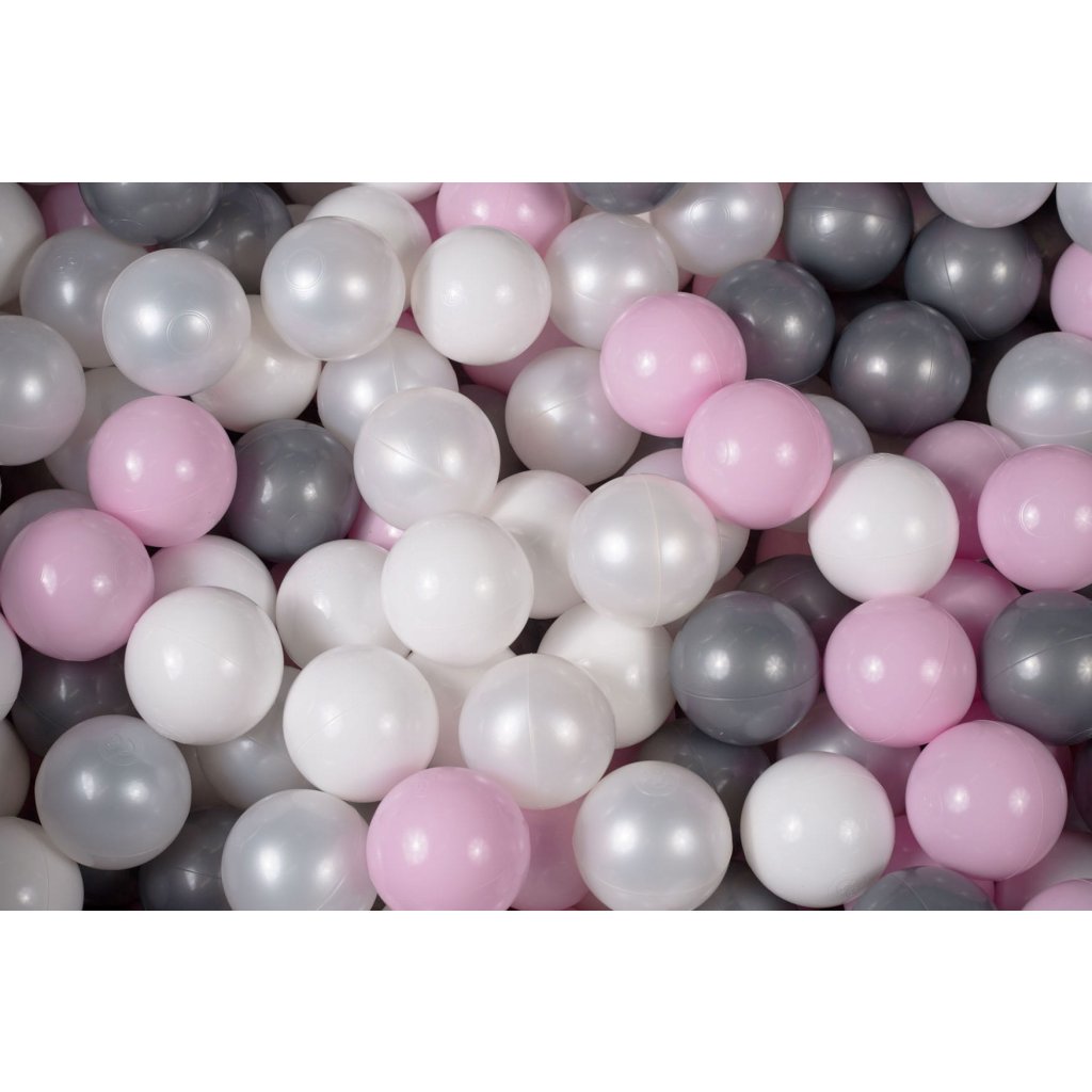 MeowBaby® SADA - certifikované plastové loptičky do suchého bazéna Ø7cm - biela, biela perleťová, strieborná, bledoružová