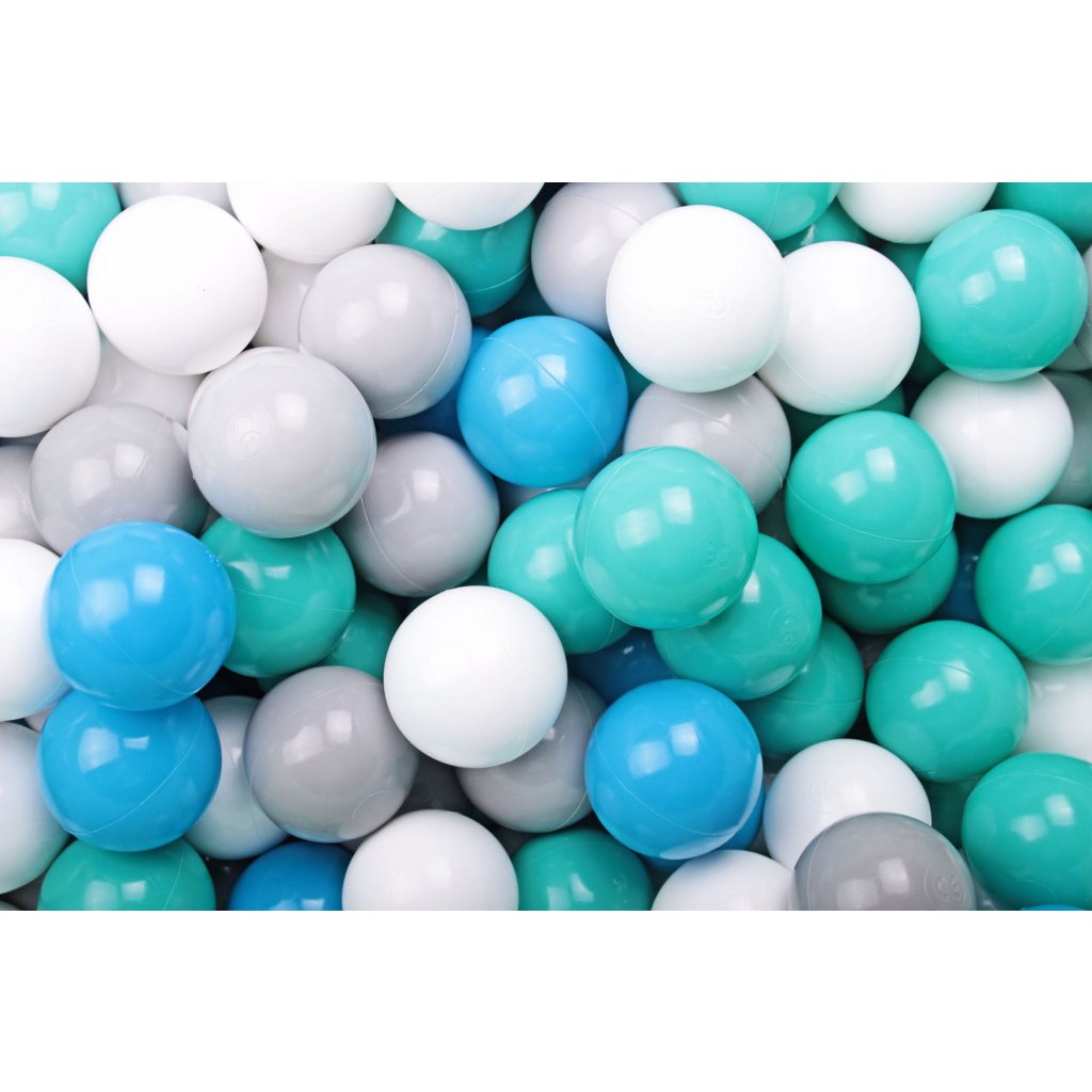 MeowBaby® SADA - certifikované plastové loptičky do suchého bazéna Ø7cm - biela, šedá, modrá, tyrkysová