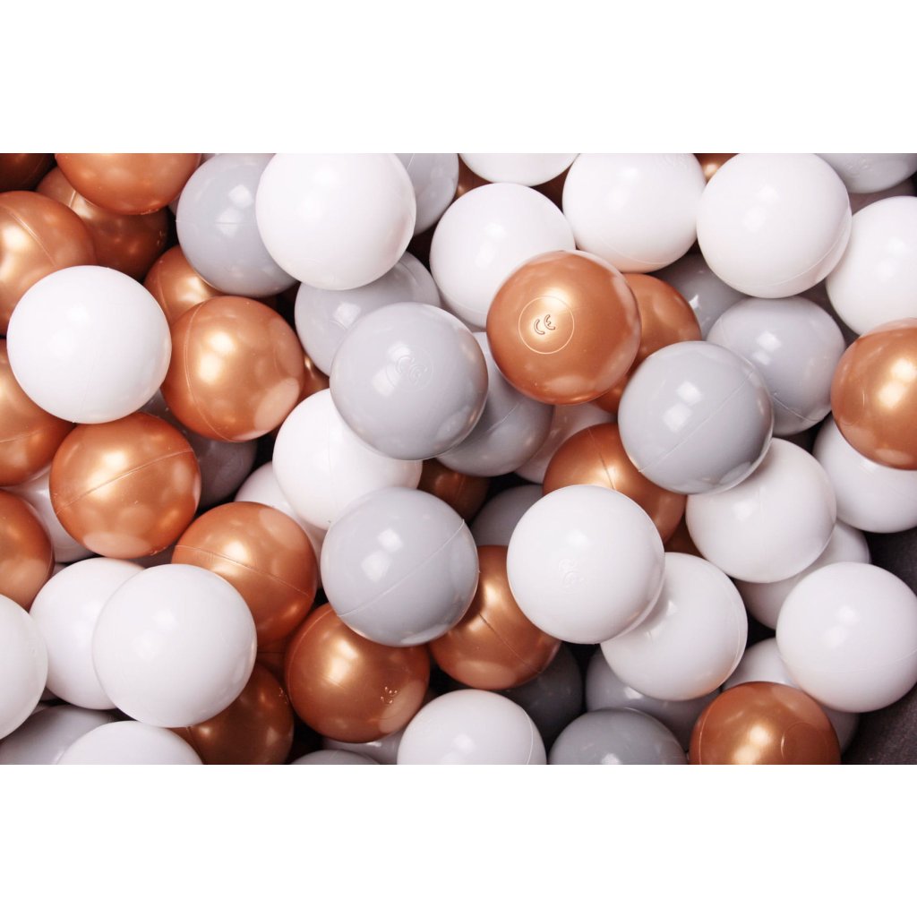 MeowBaby® SADA - certifikované plastové loptičky do suchého bazéna Ø7cm - biela, šedá, zlatá