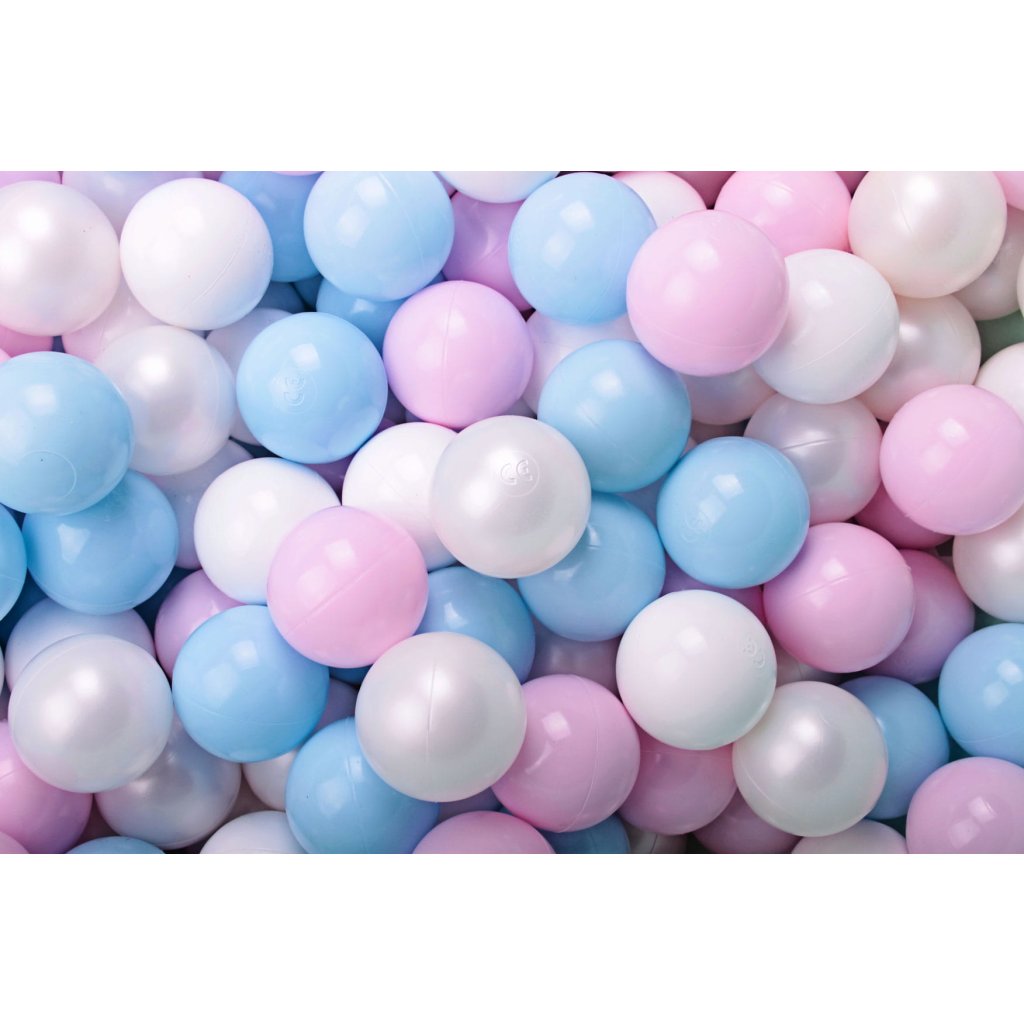 MeowBaby® SADA - certifikované plastové loptičky do suchého bazéna Ø7cm - biela perleťová, bledoružová, bledomodrá, biela