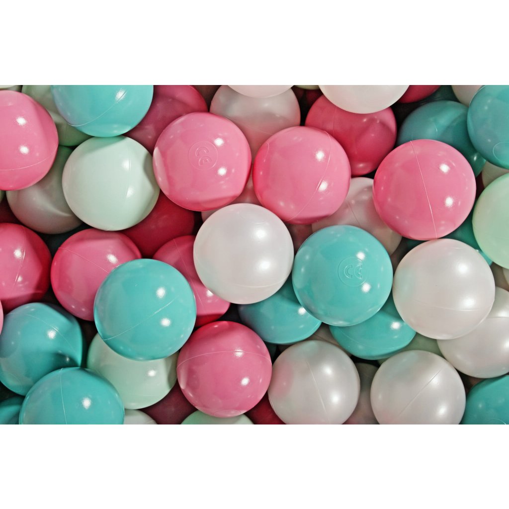 MeowBaby® SADA - certifikové plastové loptičky do bazéna Ø7cm - mätová, bledoružová, tyrkysová, biela perleťová