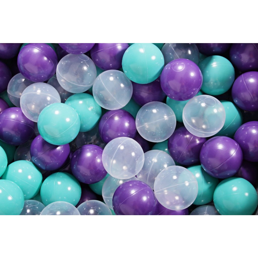 MeowBaby® SADA - certifikové plastové loptičky do suchého bazéna Ø7cm - fialová, transparentná, tyrkysová